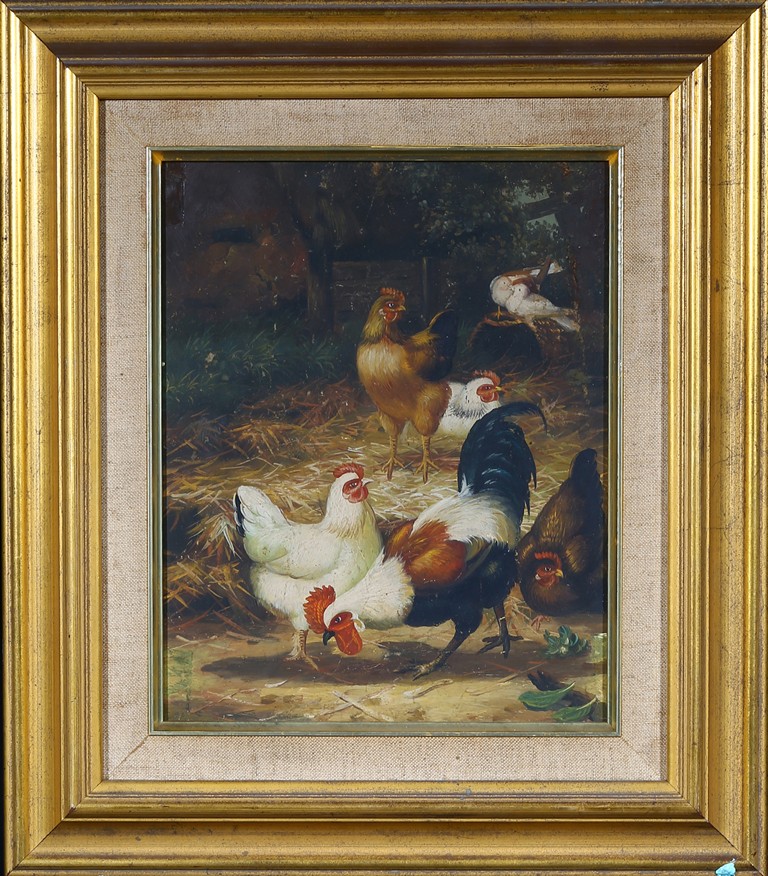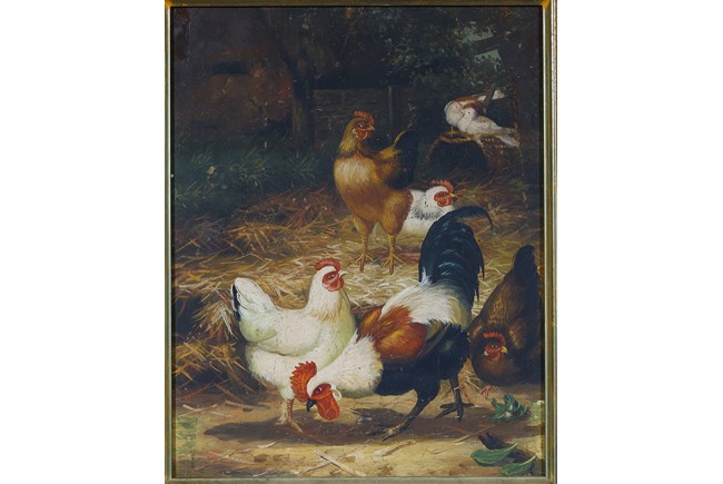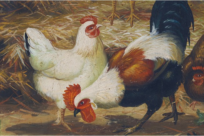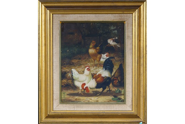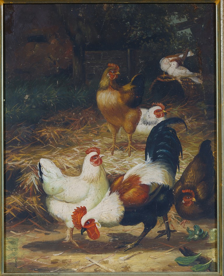 ANONYMOUS: OIL ON CANVAS 'CHICKEN' PAINTING 佚名 西洋油畫 雞