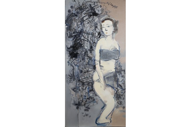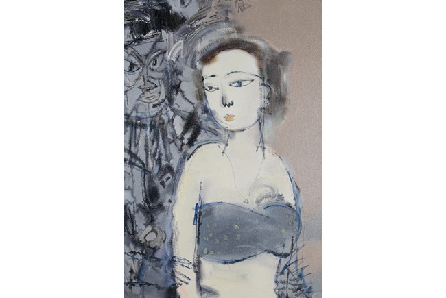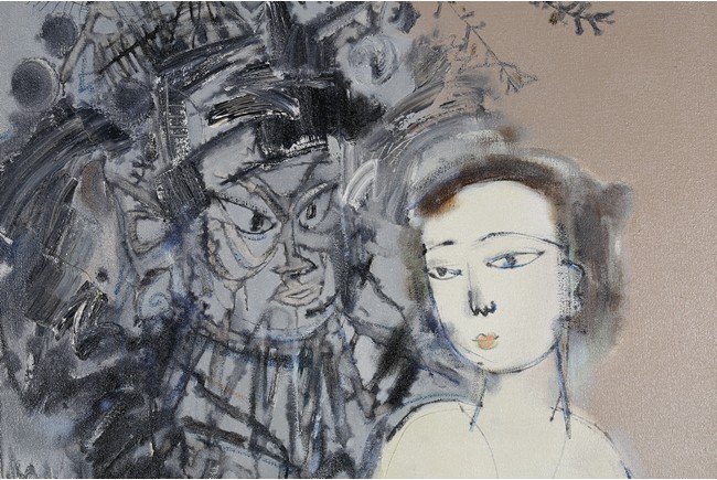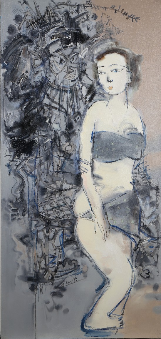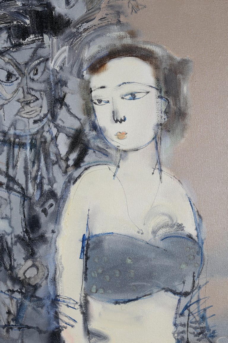 Chinese. Oil on canvas. Opera figure and a lady. Framed. Signed and dated.