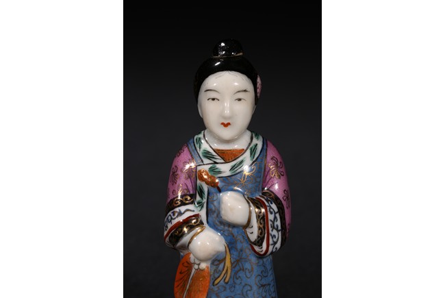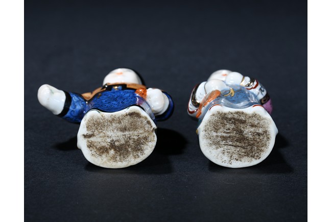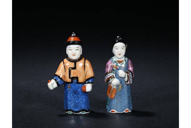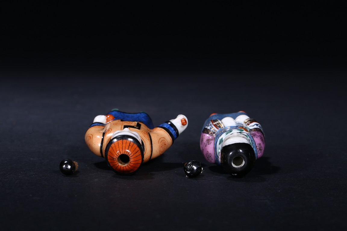 TWO FAMILLE ROSE FIGURE CERAMIC SNUFF BOTTLES 粉彩瓷人物鼻煙壺兩只