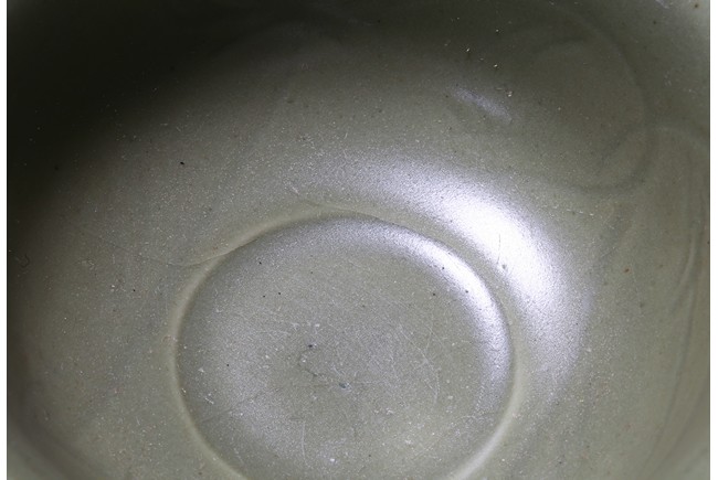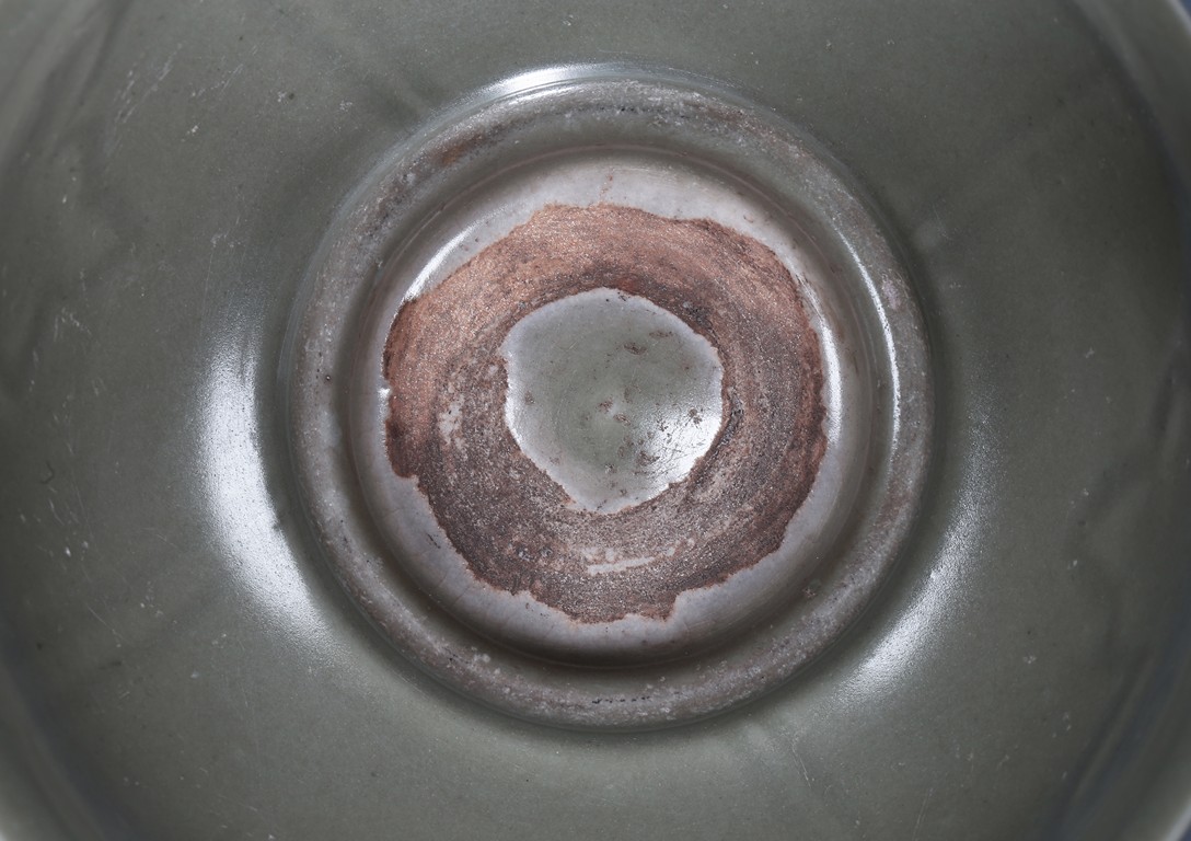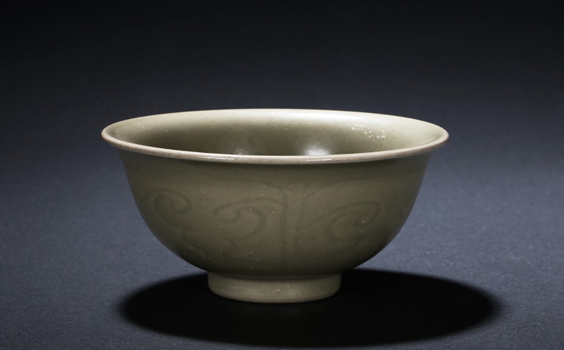 Rising to an everted rim, the body moulded with ruyi shape pattern, overall with olive green glazed. Ming Dynasty period.