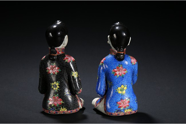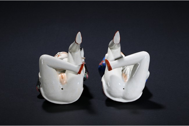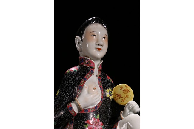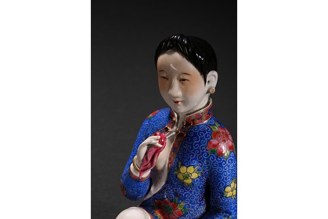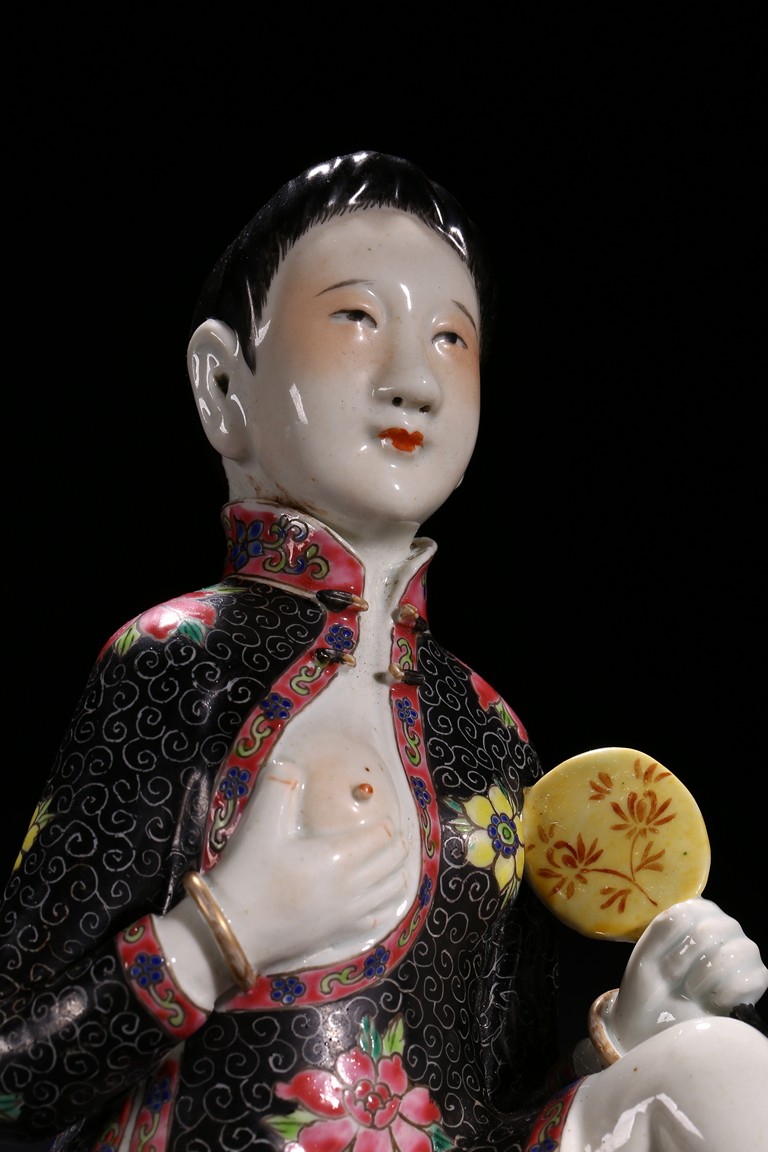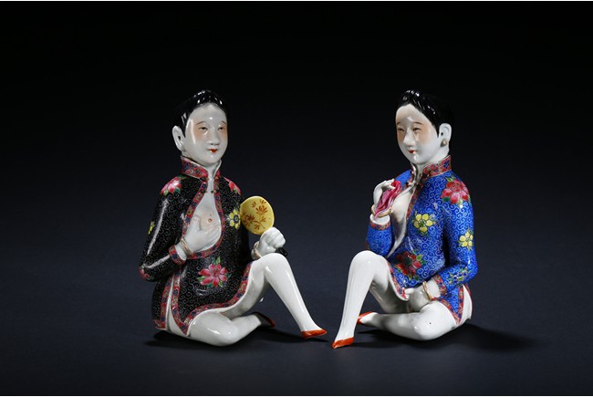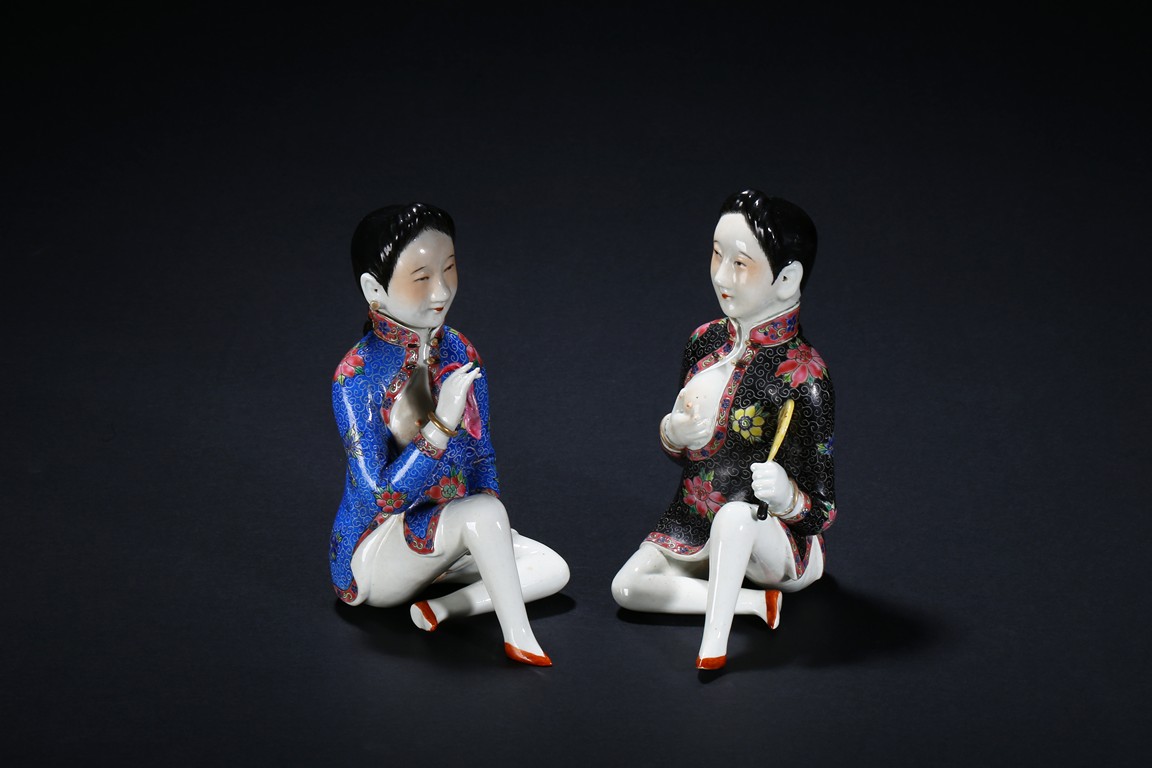 Each lady figure is nearly identical, all wearing qipao robe decorated with floral design, seated with one knee raised, in different erotic posture. Late Qing Dynasty period.