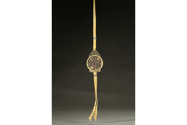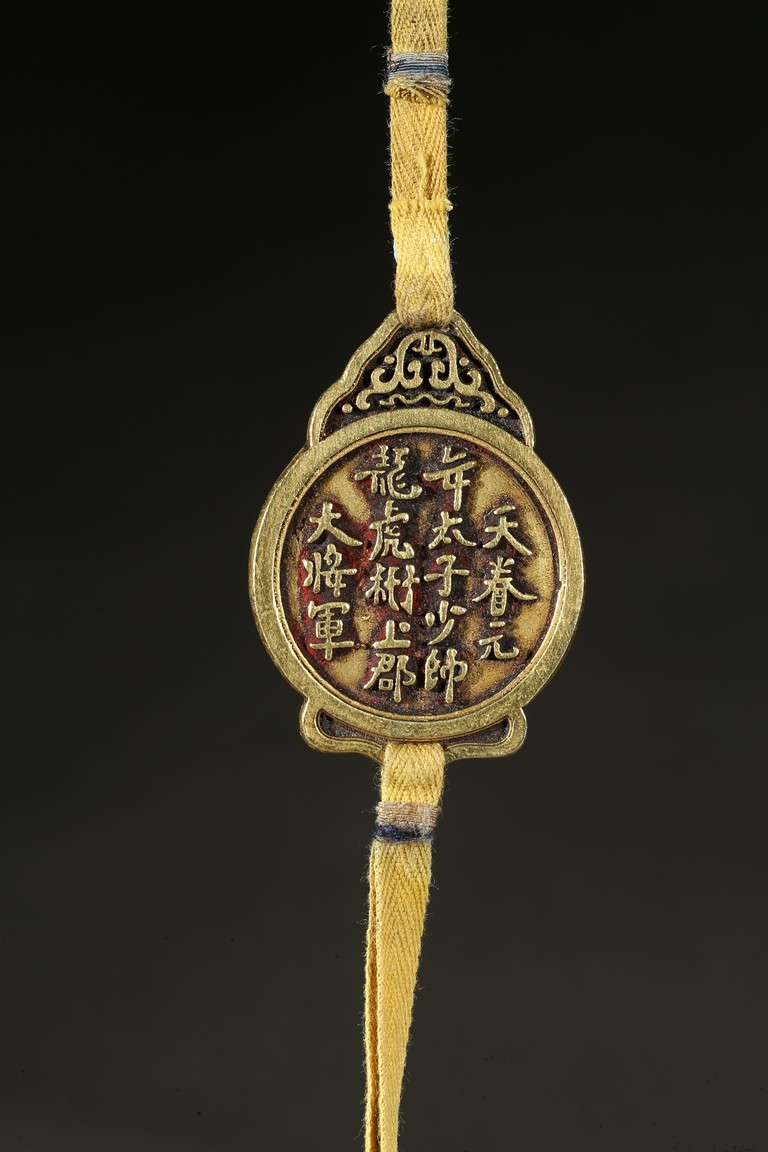 Of circular form, each side cast with inscriptions of the military official's rank and the reign period in Chinese and Jin script. Southern Song Dynasty period.