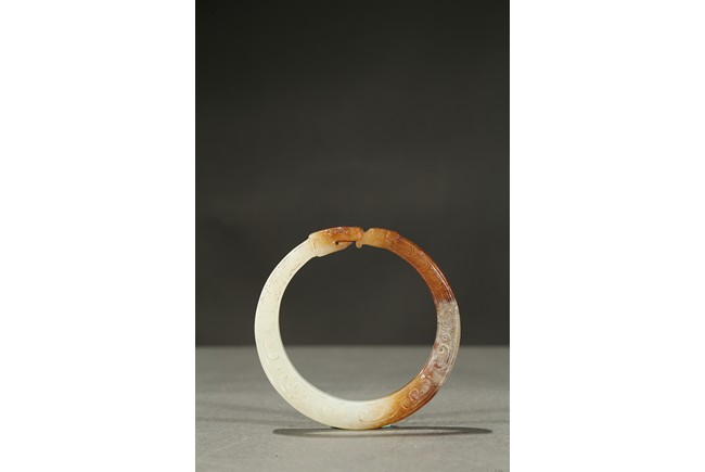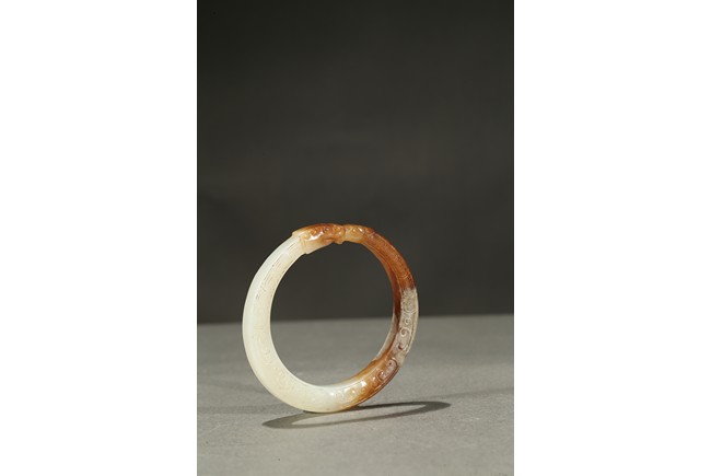 A WHITE AND RUSSET BANGLE 舊玉環