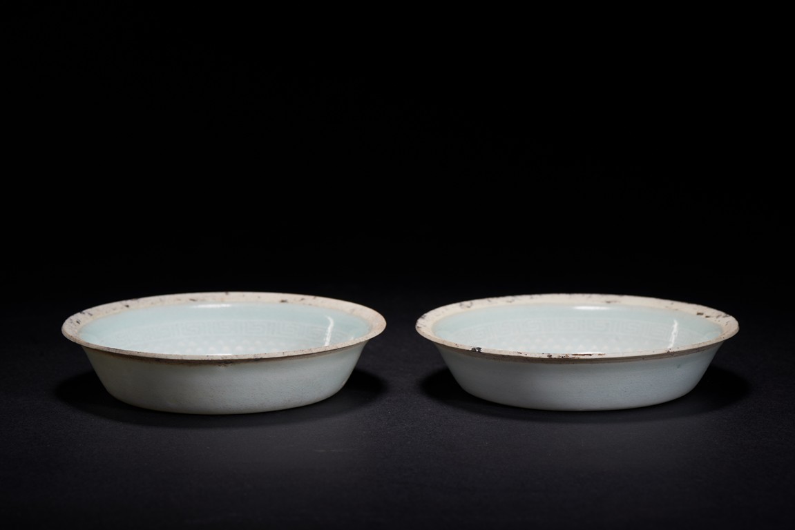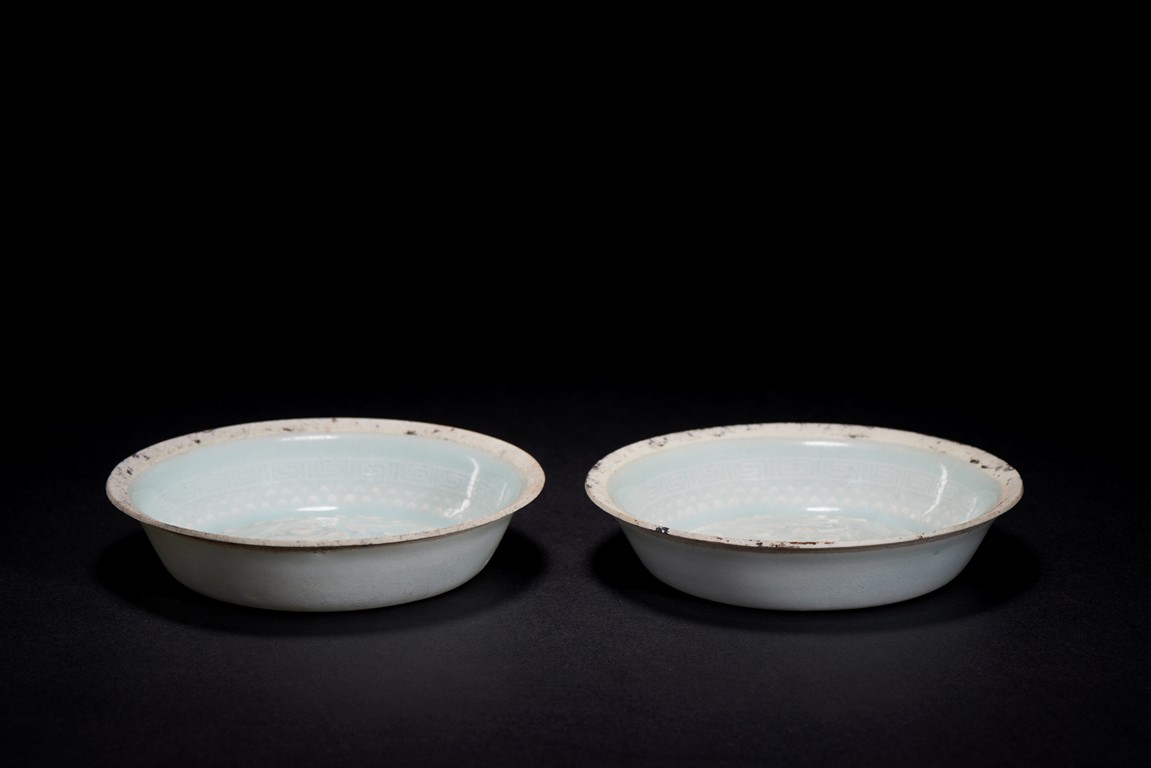 Each dish moulded with twin fishes and floral pattern. Southern Song dynasty period.