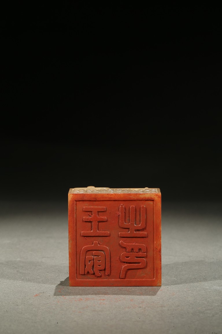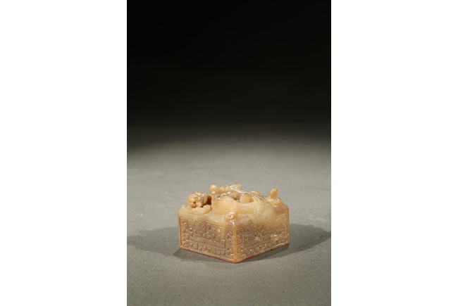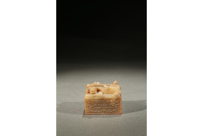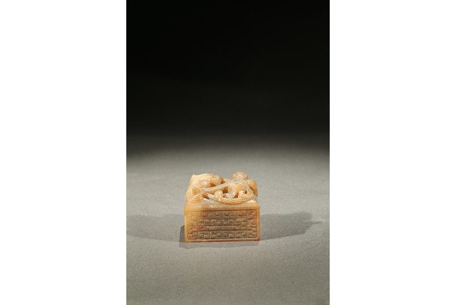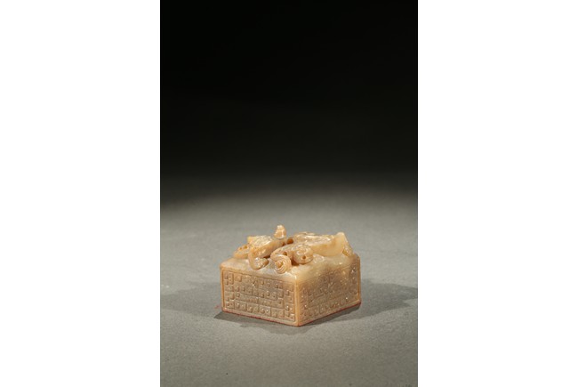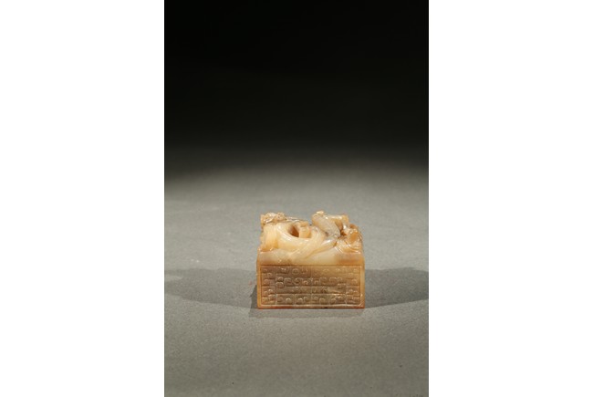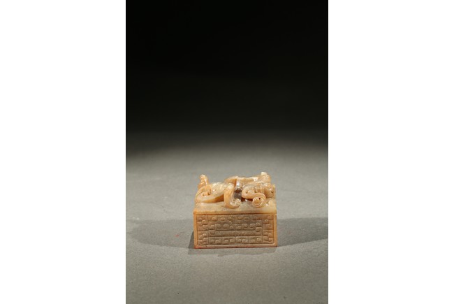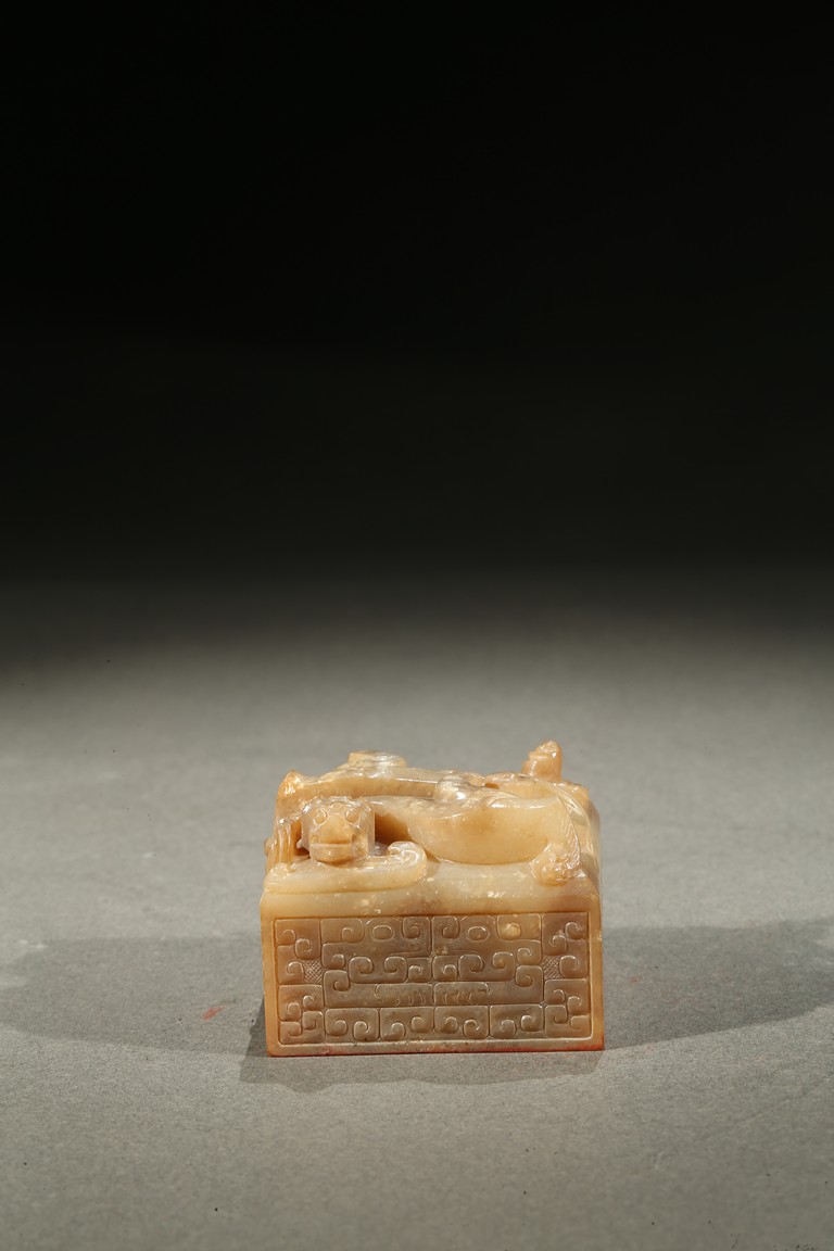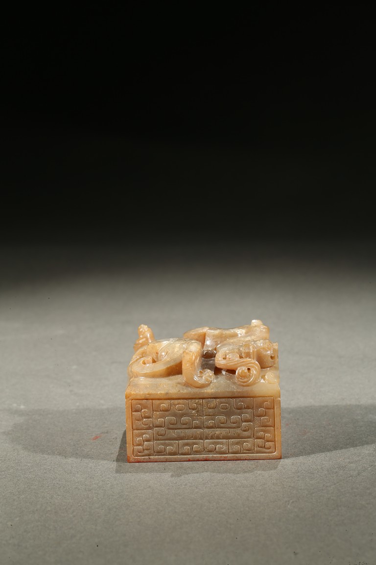 A CELADON JADE CARVED CHILONG SEAL 舊玉螭龍鈕印