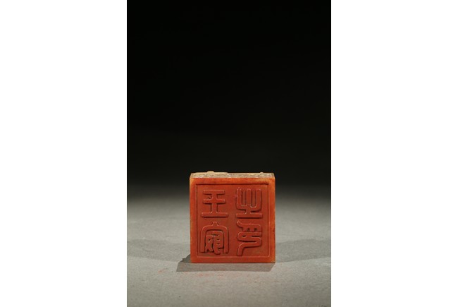 Of square section, each side with raised scrolling pattern, top with a chilong, base carved.