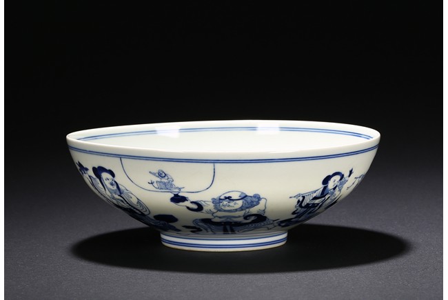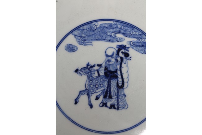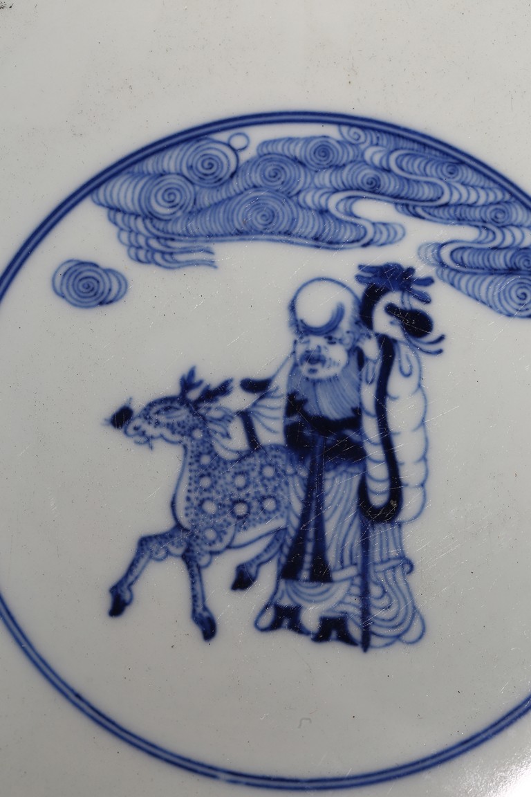 The exterior painted with the eight immortals from Chinese legend, interior painted with shoulao and his deer, the base with six character Guangxu mark. Late Qing Dynasty period.