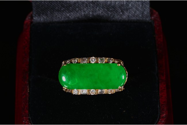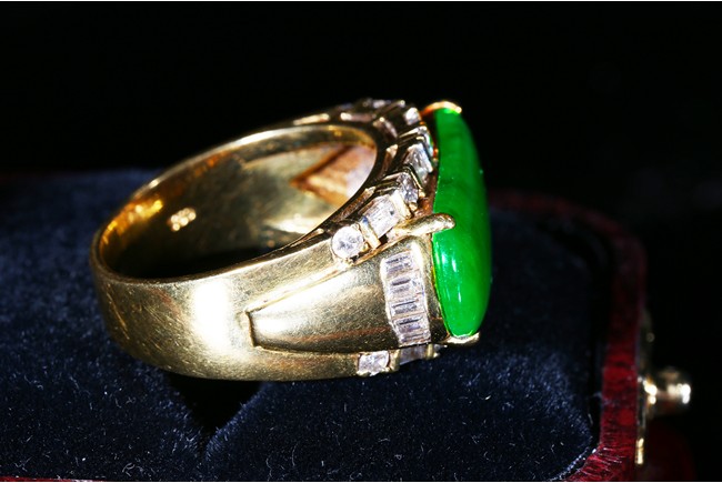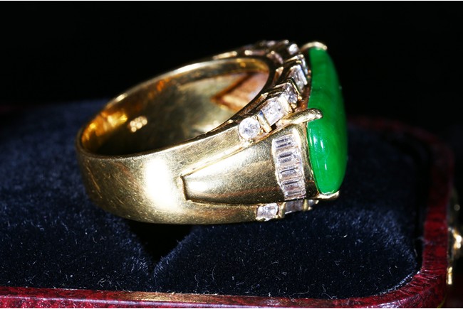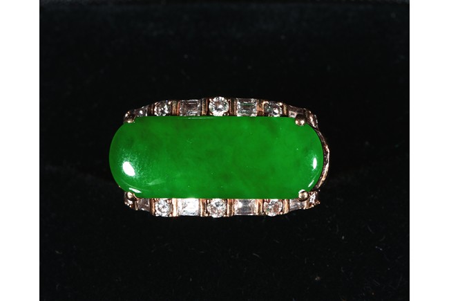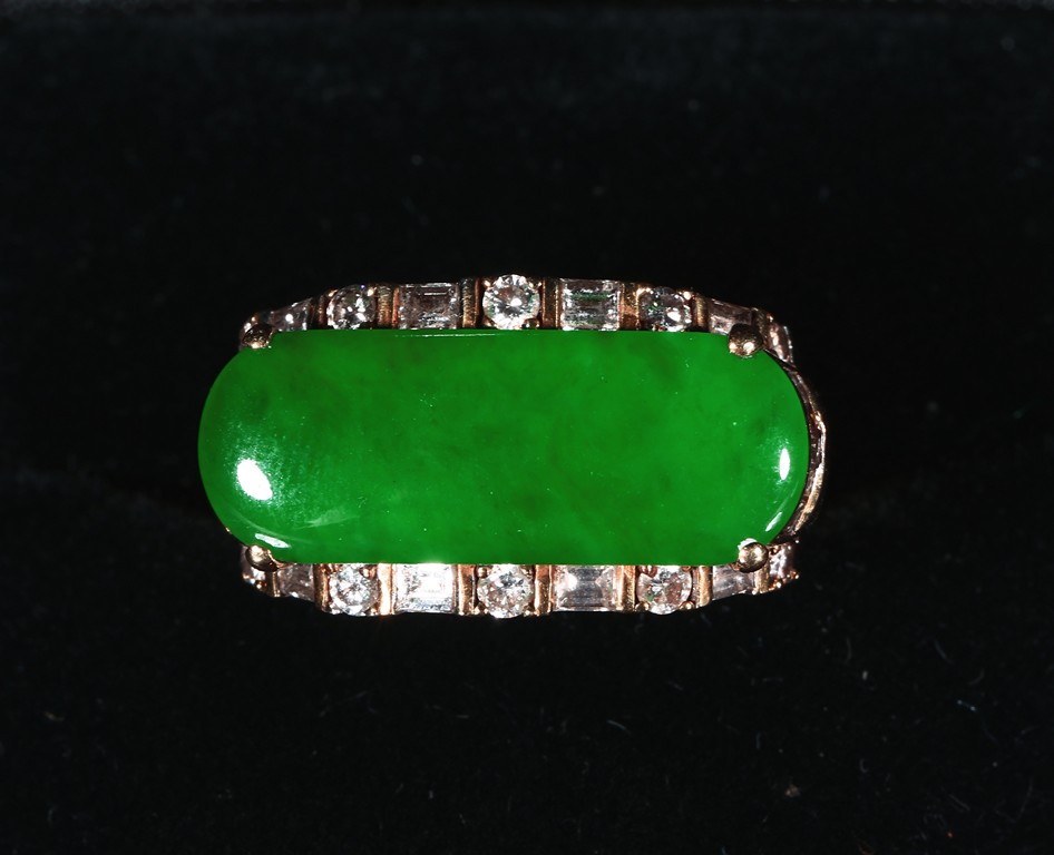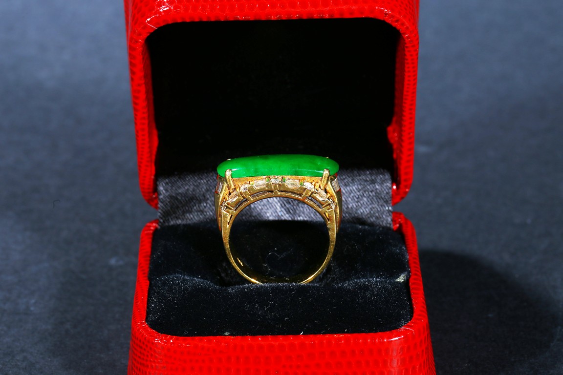 A JADEITE AND DIAMOND GOLD RING 18K金鑲鑽翡翠戒指