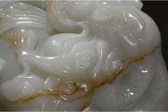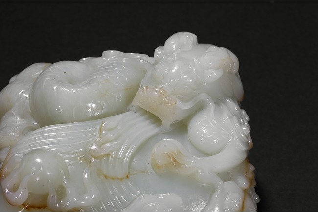 A WHITE JADE 'DRAGON' PAPER WEIGHT    清晚期 白玉雕龍鎮紙