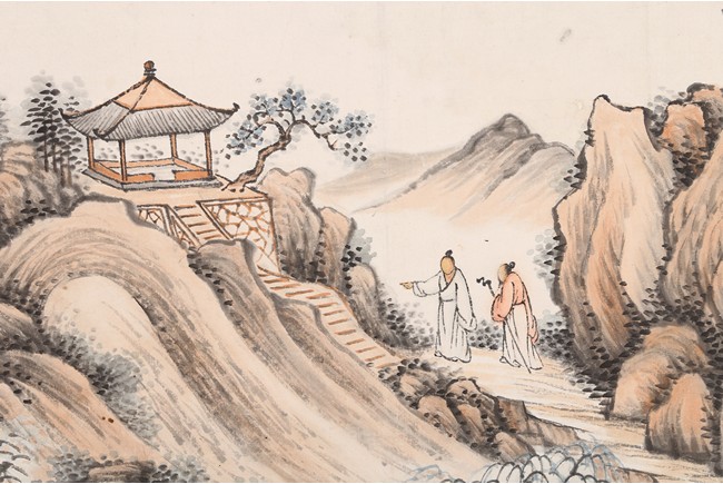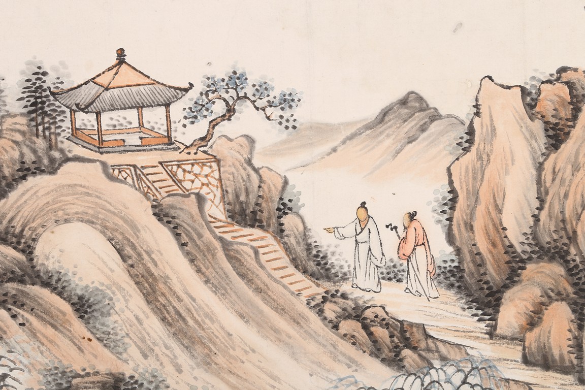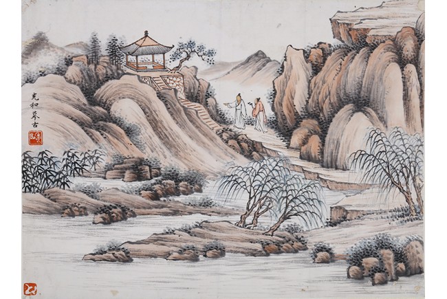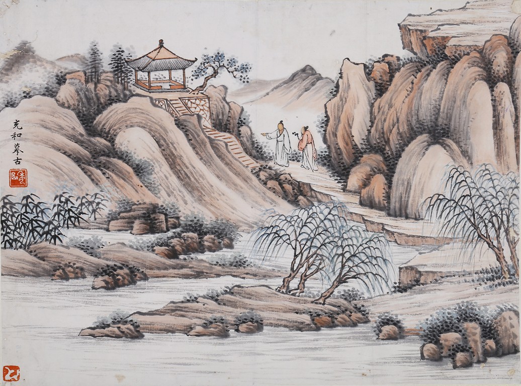 ZHANG CHONGHE: COLOR AND INK 'LANDSCAPE' PAINTING 張充和 摹古圖 設色紙本