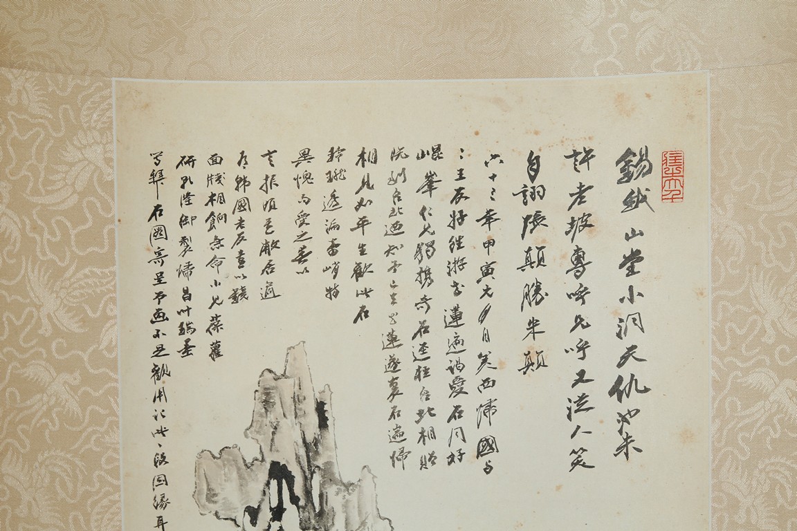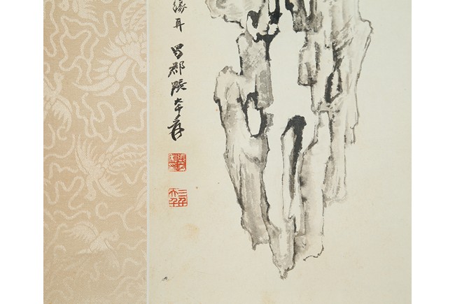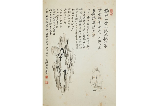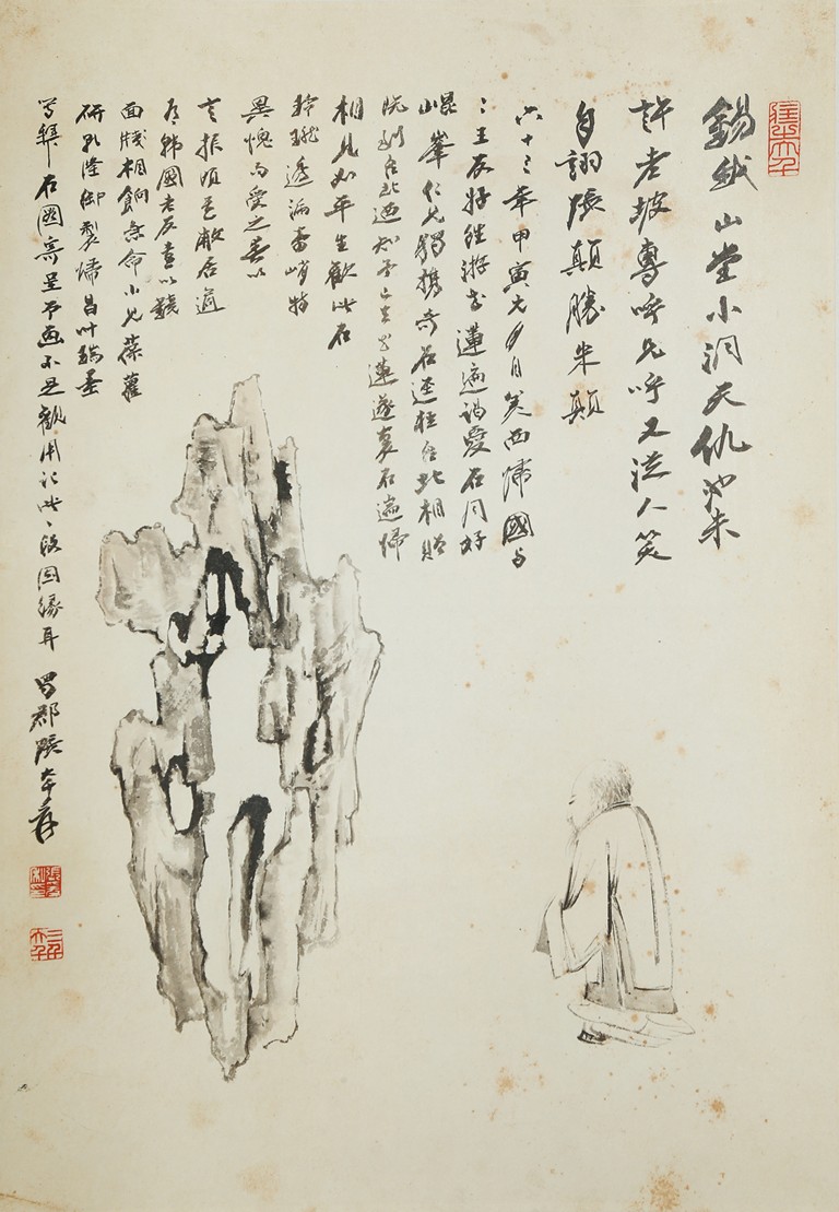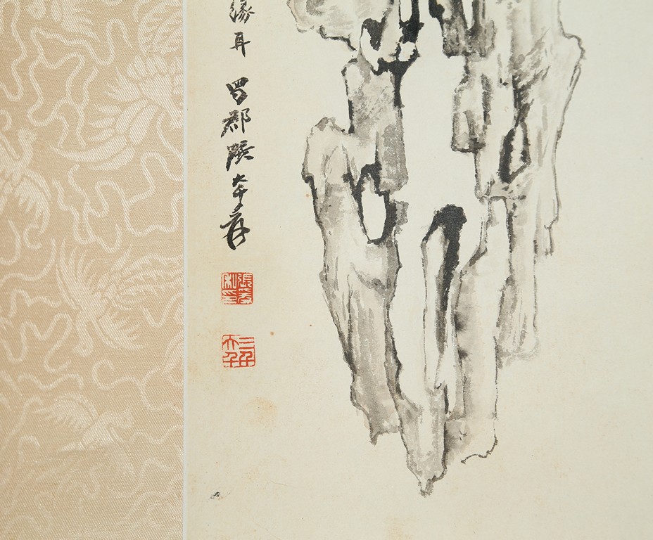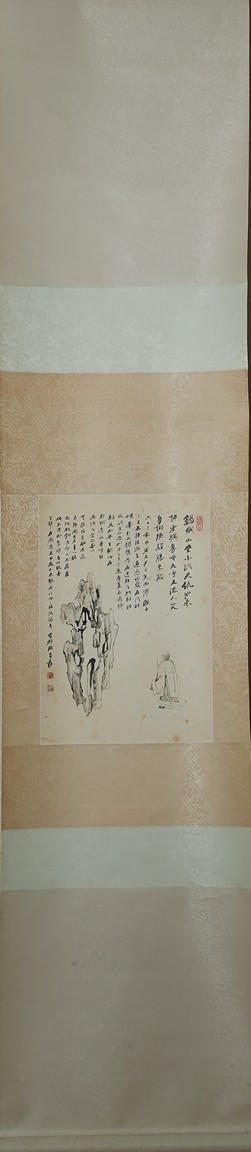Ink on paper. Scholar and rock. Hanging scrolling. Inscribed, signed Zhang Daqian Yuan, with three seals of the artist.