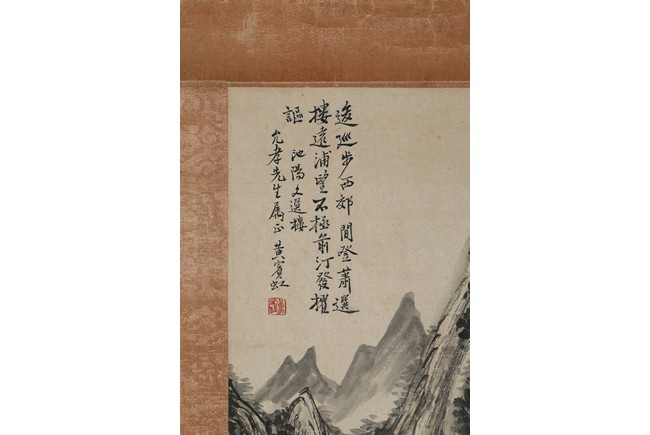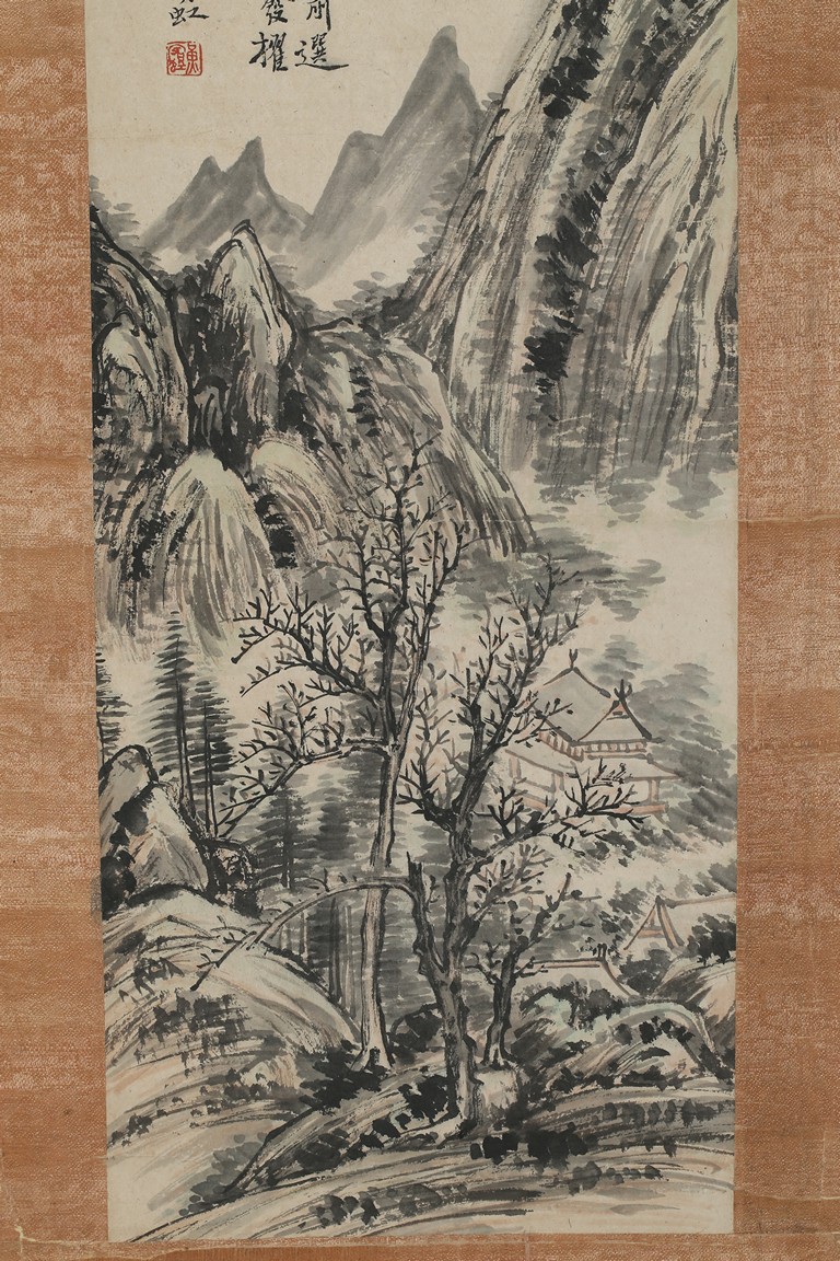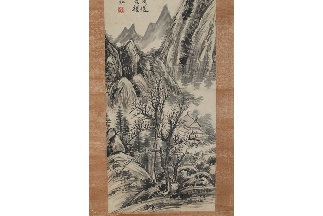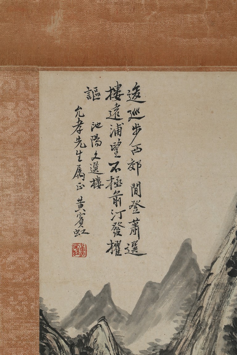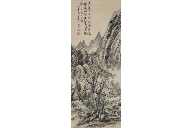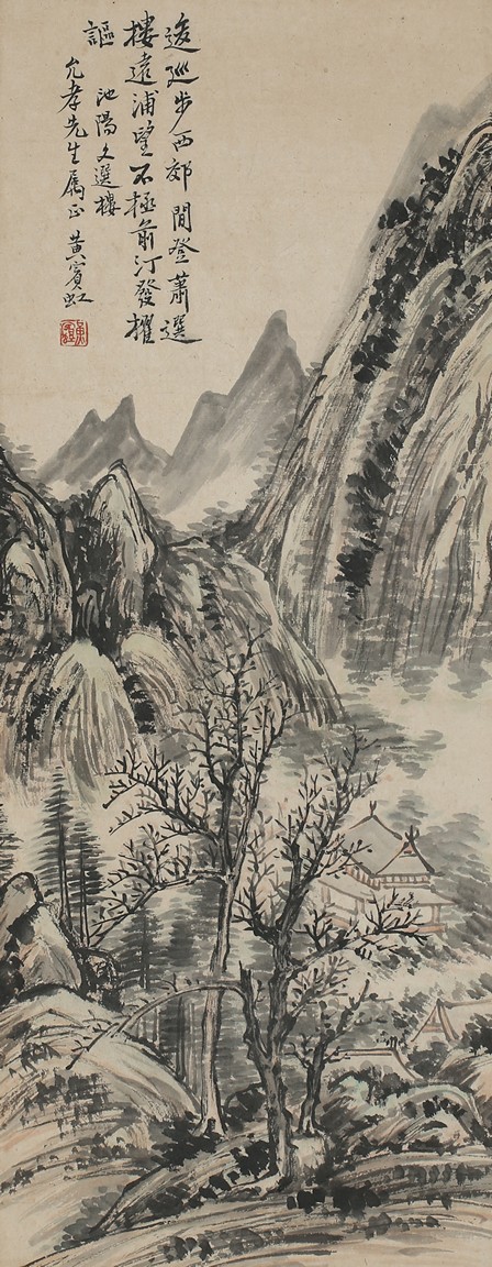 Ink on paper. Landscape. Vertical, mounted for framing, inscribed and signed Huang Binhong, dedicated to Mr. Yun Xiao.