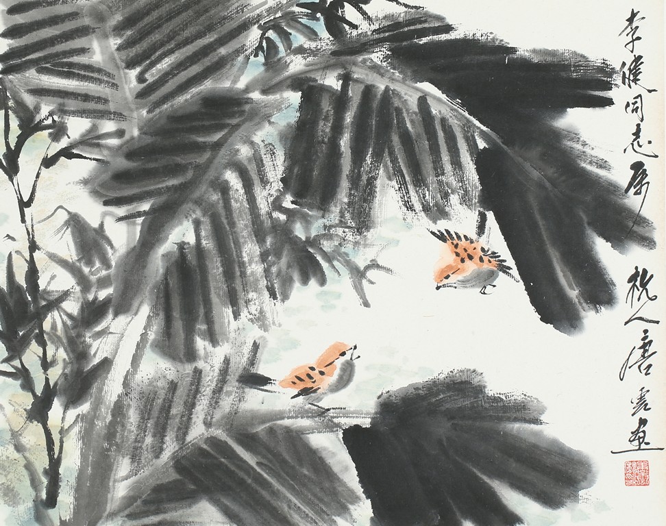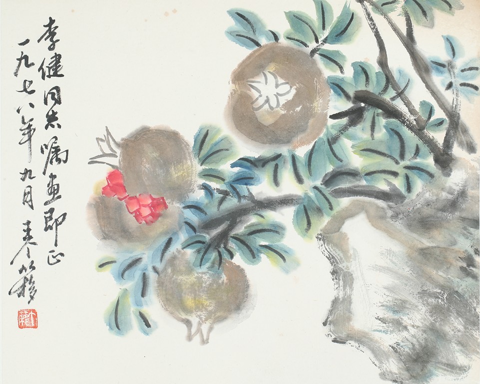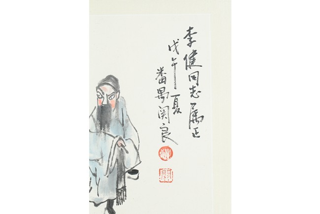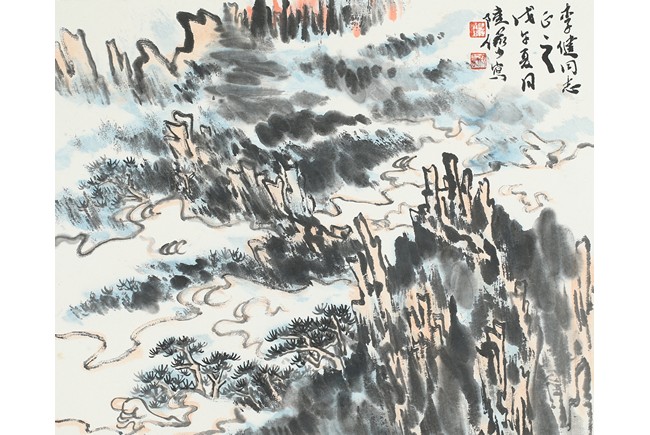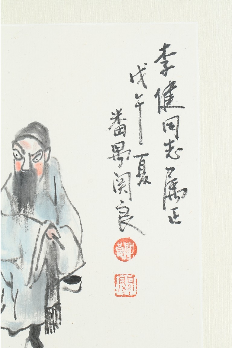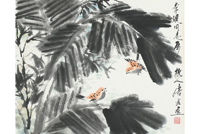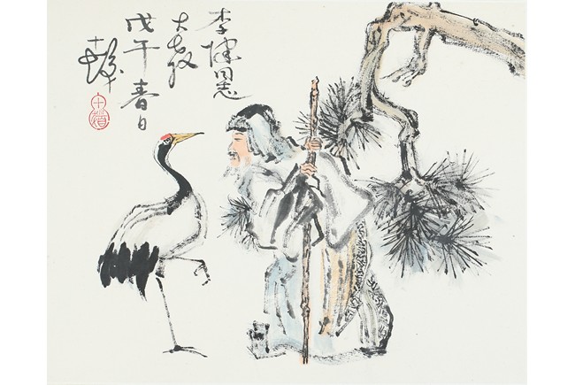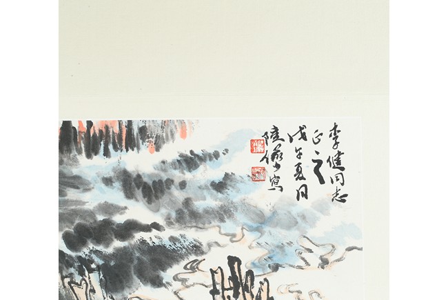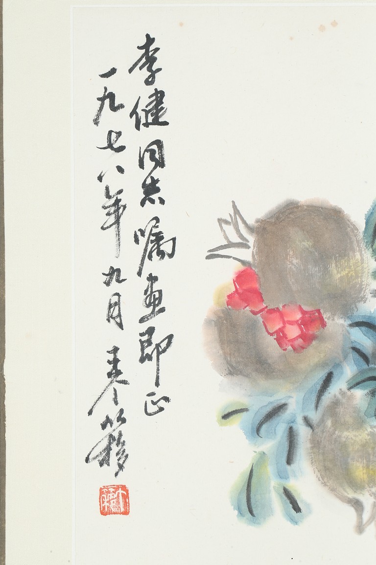 Color and ink on paper. Flowers, birds, figures. Eight-leave album. Artist signed include Lu Yanshao, Guan Shanyue, Tang Yun, Guan Liang, Chen Shifa, Liu Danzhai, Wang Geyi, all dedicated to Li Jian.
