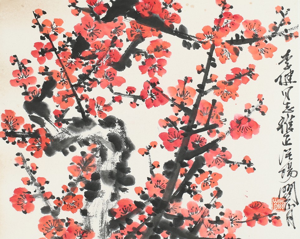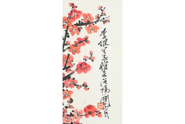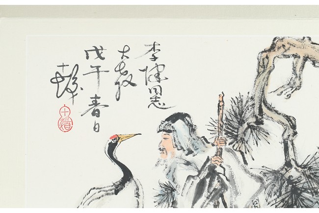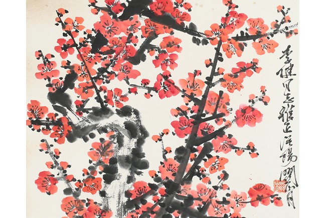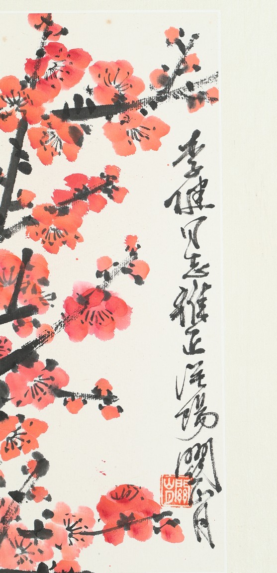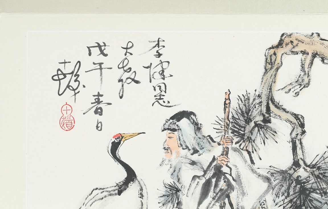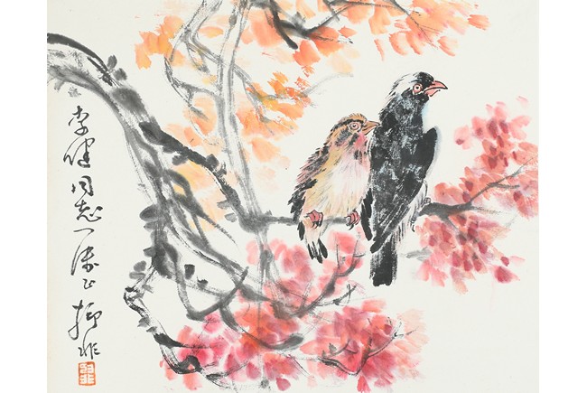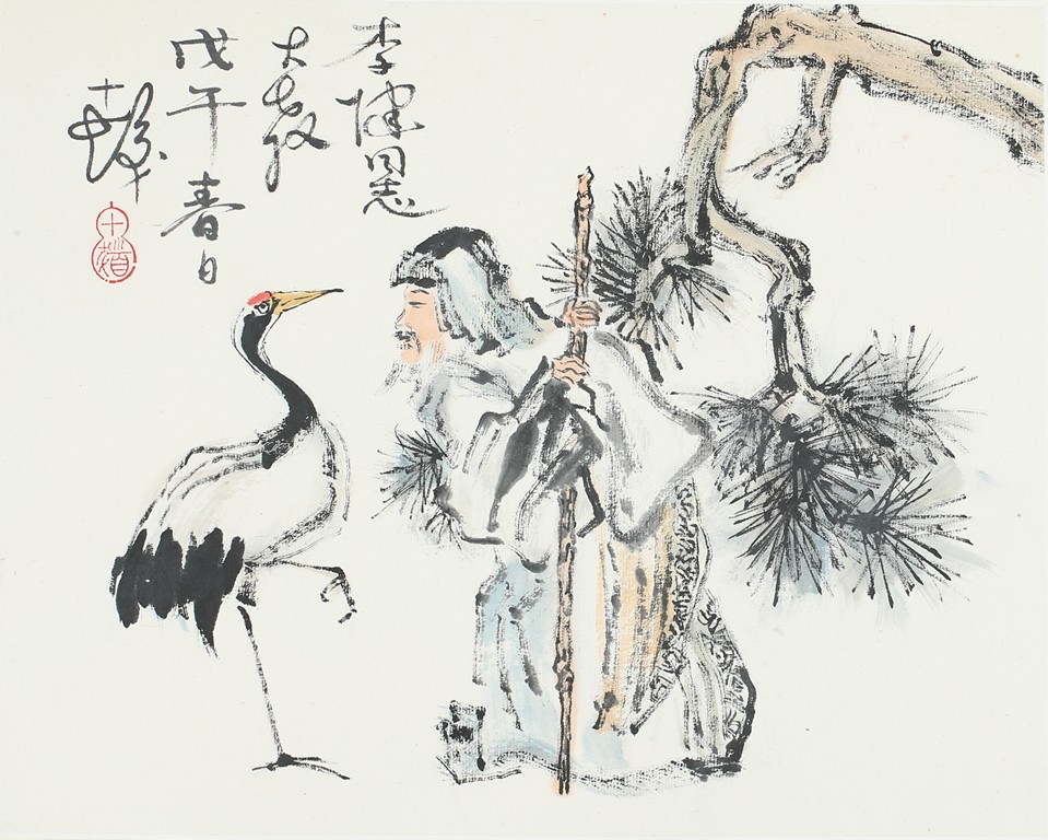 Color and ink on paper. Flowers, birds, figures. Eight-leave album. Artist signed include Lu Yanshao, Guan Shanyue, Tang Yun, Guan Liang, Chen Shifa, Liu Danzhai, Wang Geyi, all dedicated to Li Jian.