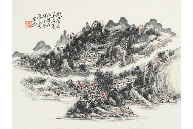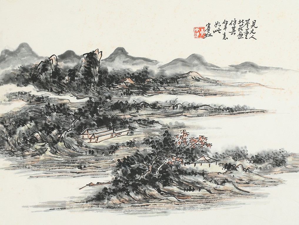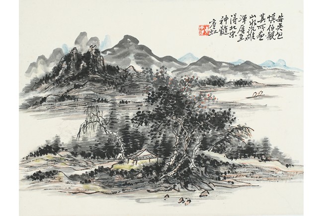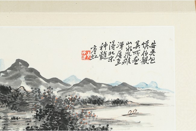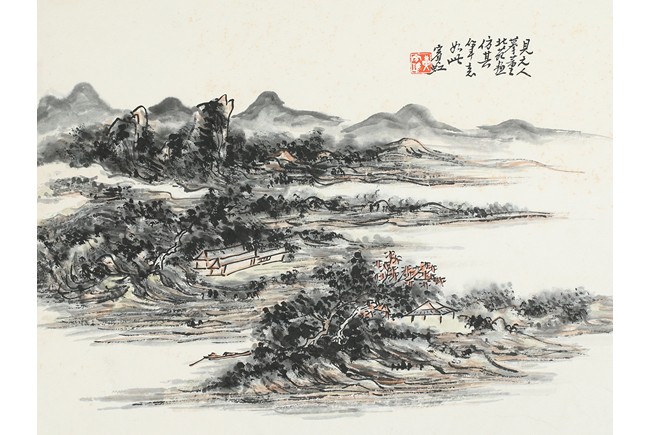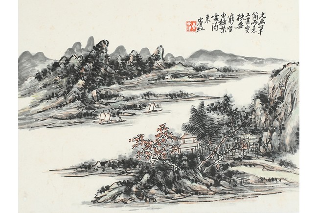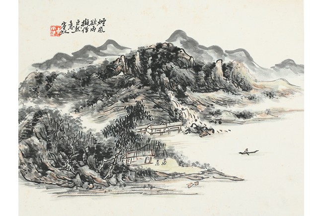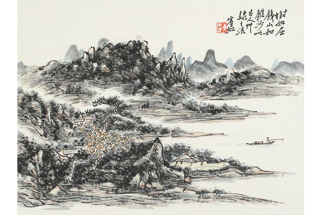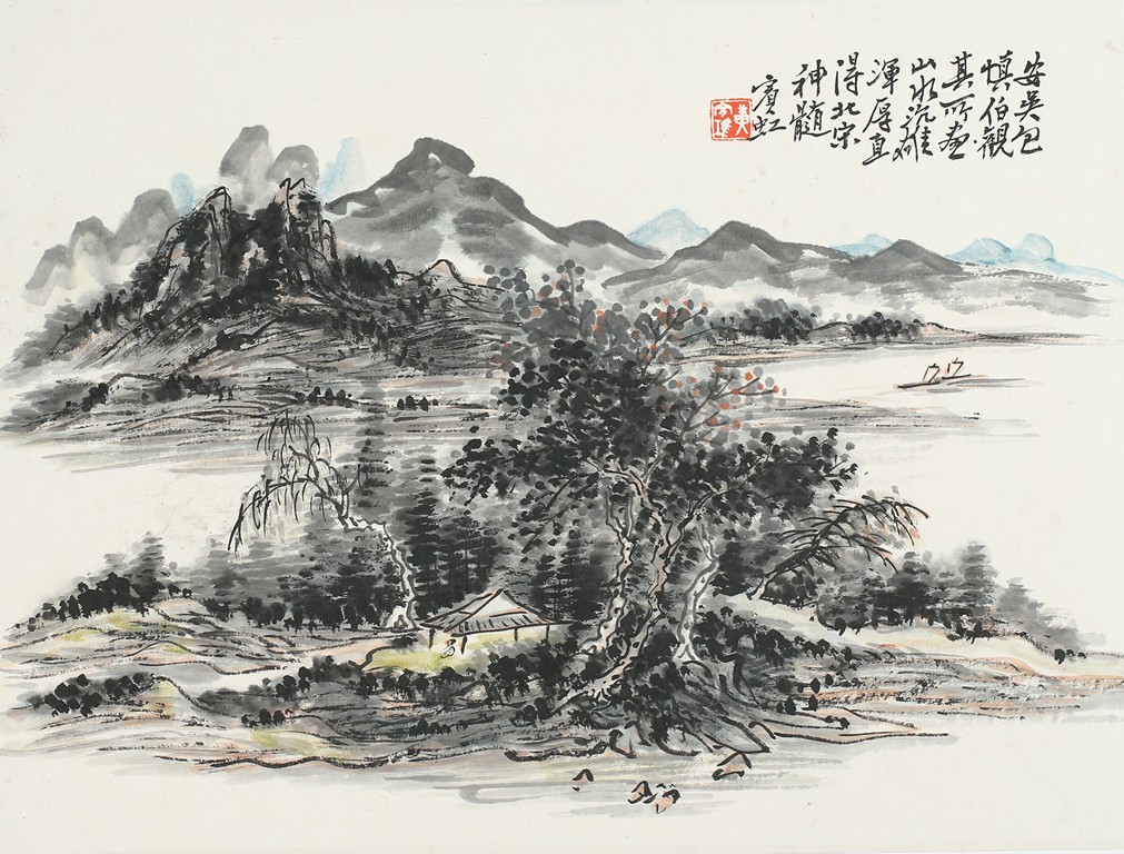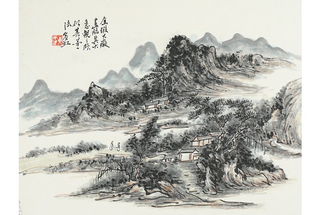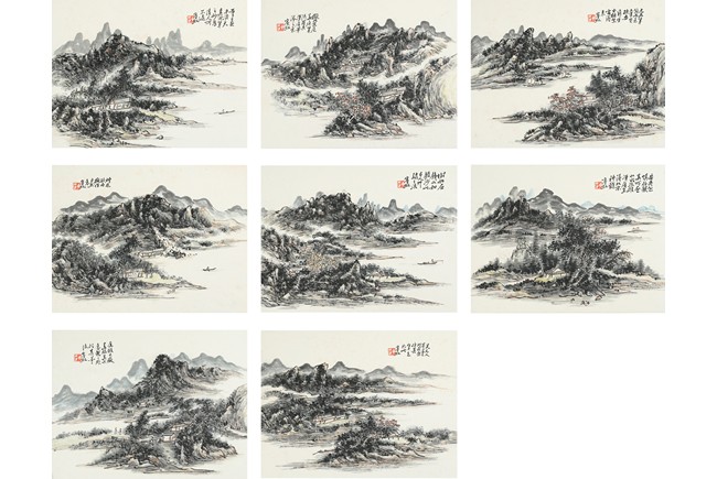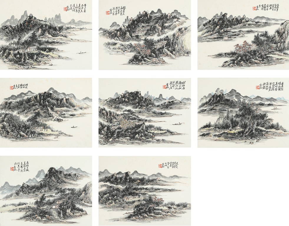 Color and ink on paper. Landscape. Eight leaves album. Inscribed, signed Binhong, each with one seal of the artist.