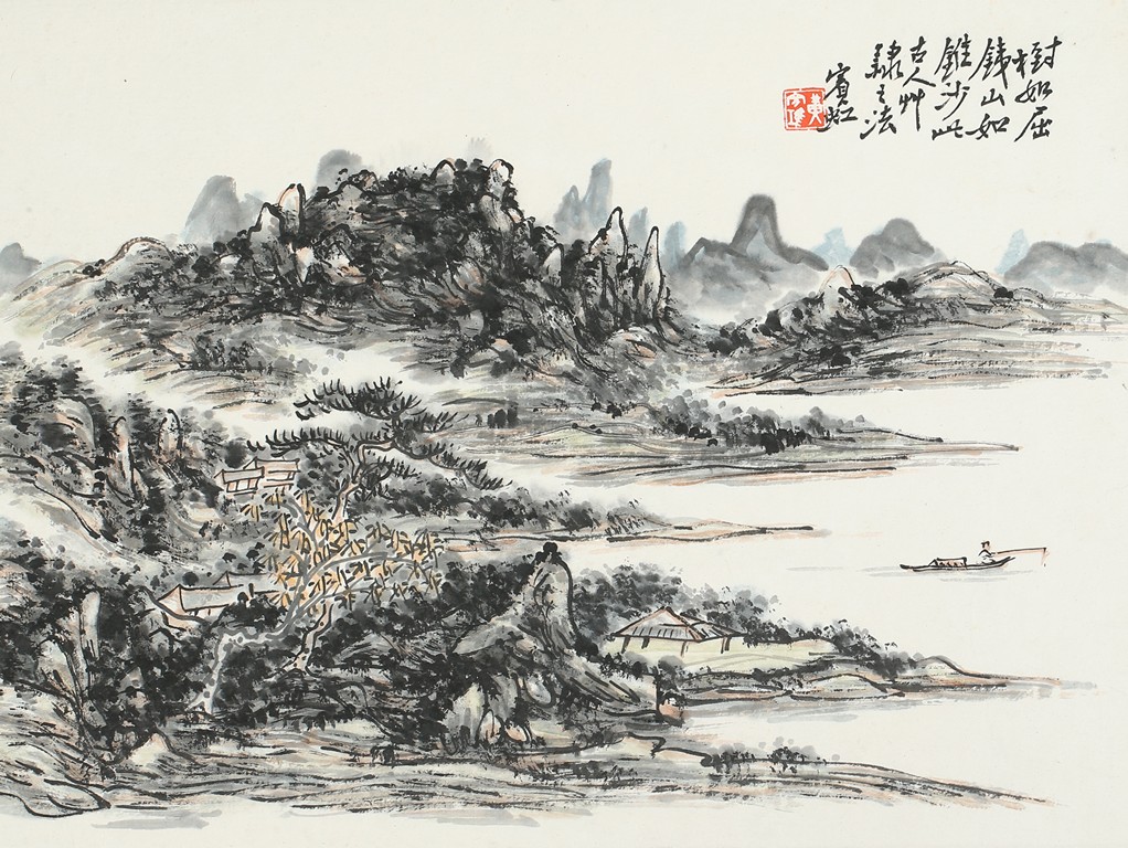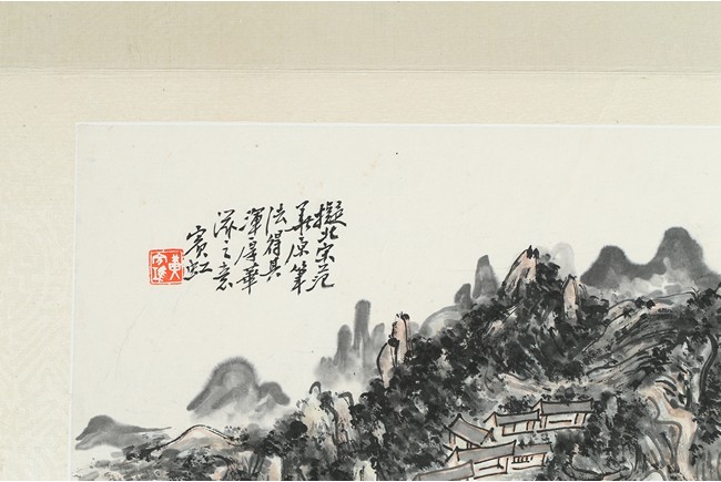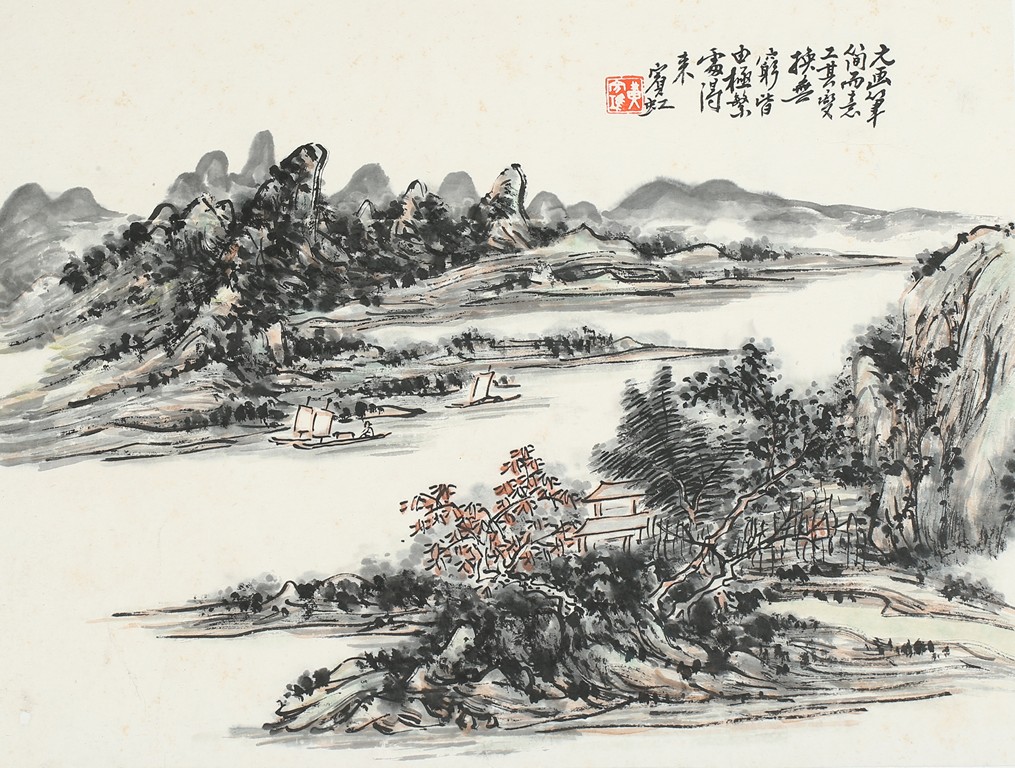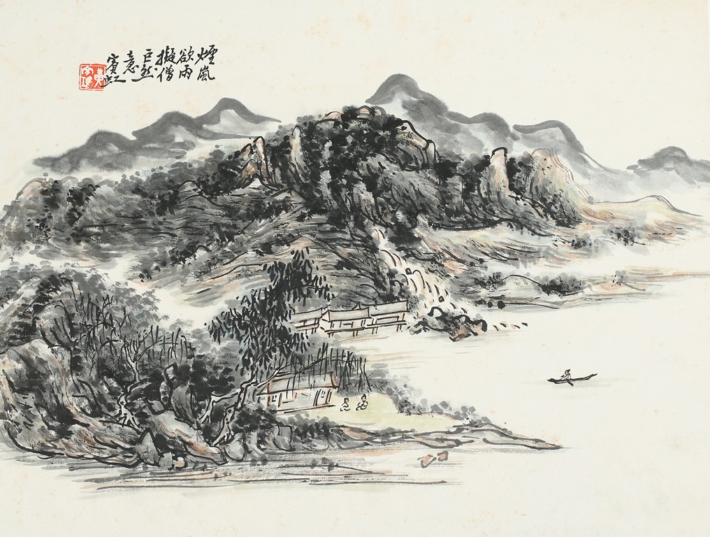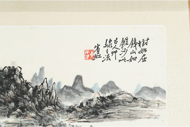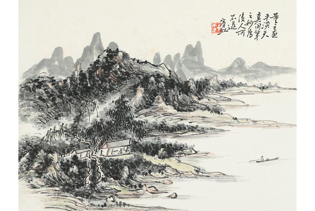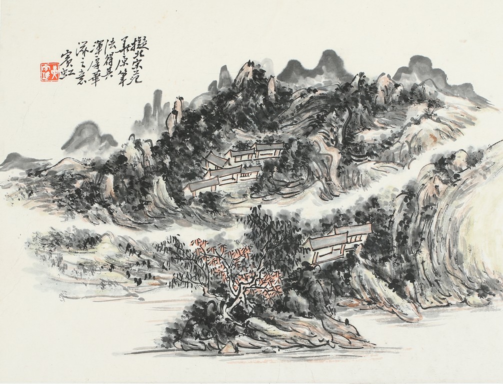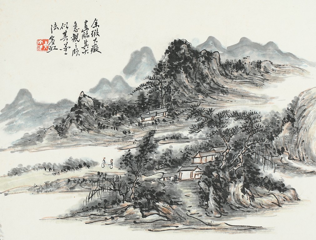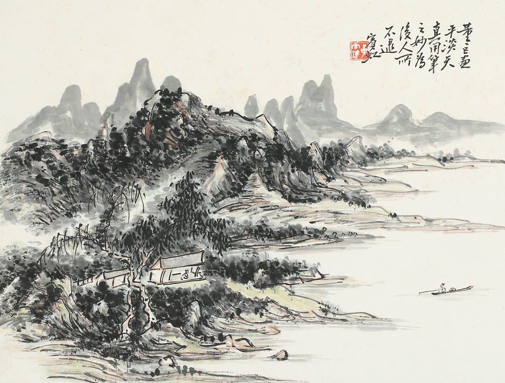Color and ink on paper. Landscape. Eight leaves album. Inscribed, signed Binhong, each with one seal of the artist.
