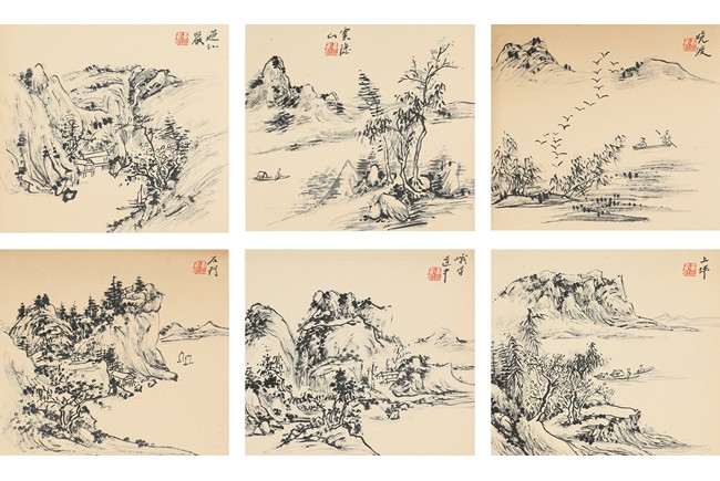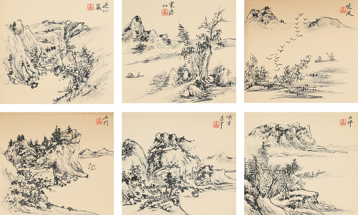 Ink on paper. Landscape. Six leaves album. Inscribed and one seal each leaf.