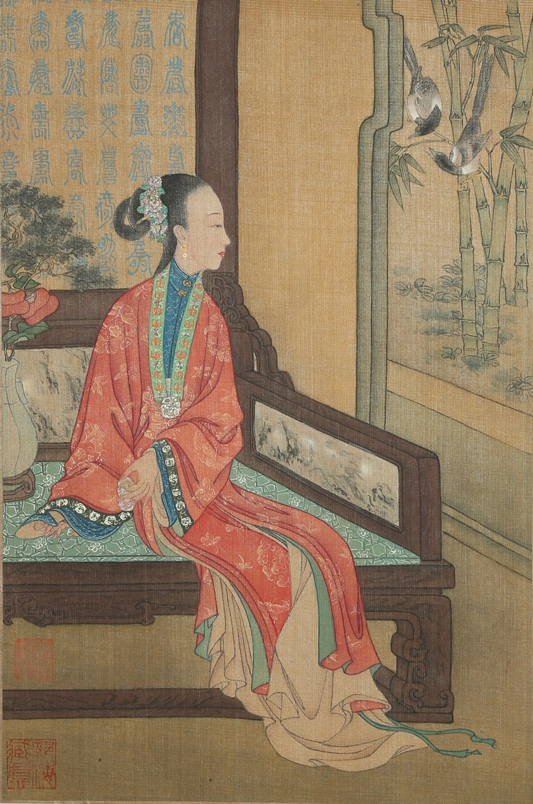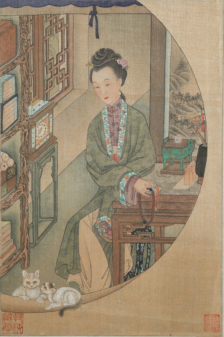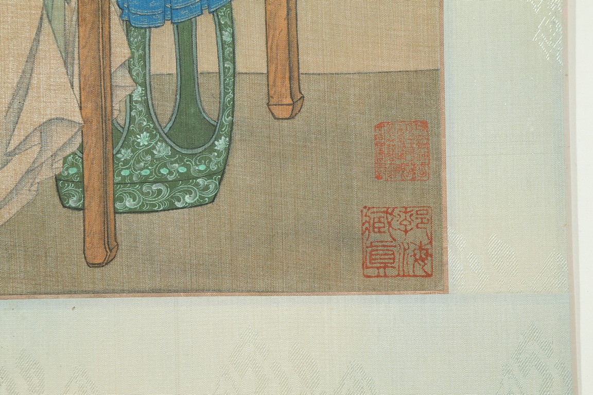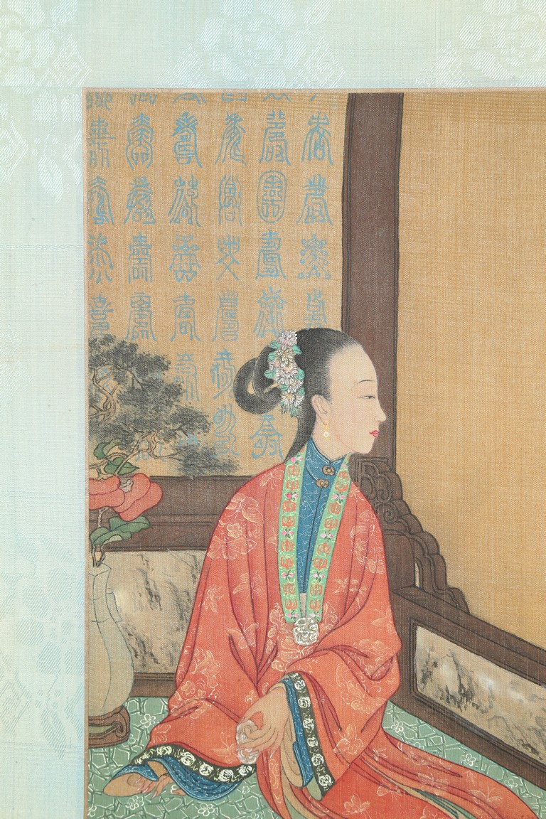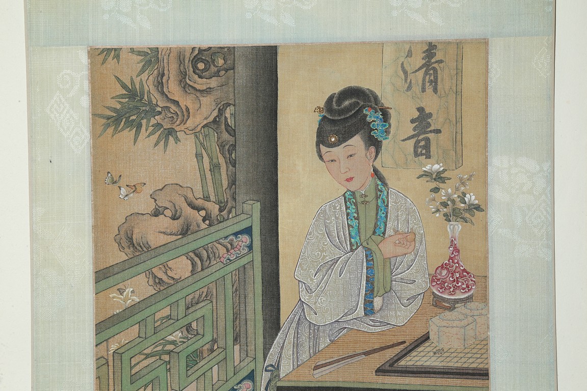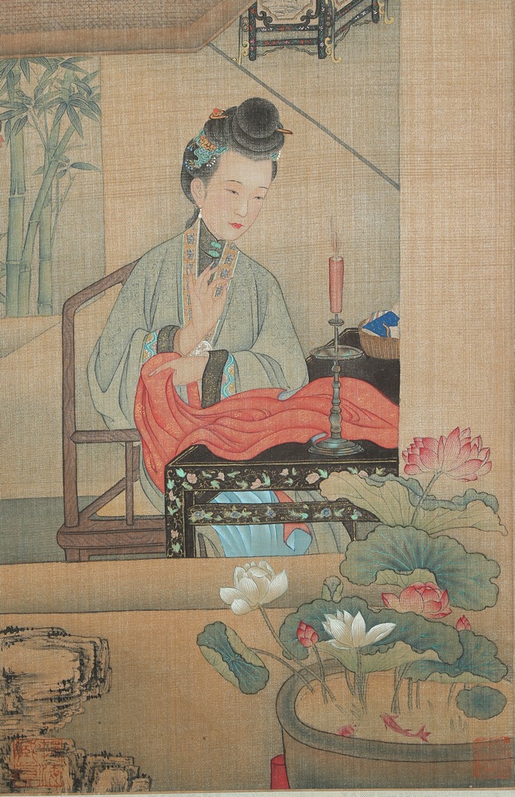 Color and ink on silk. Lady. Each with two seals of the artist, signed Ding Guanpeng, attributed to Ding Guanpeng.