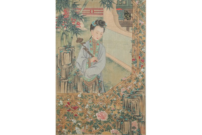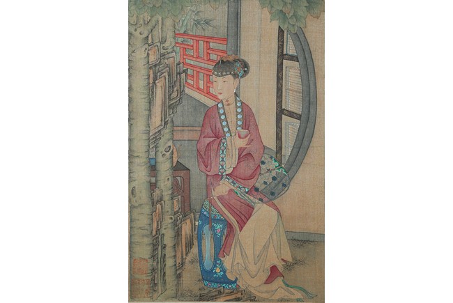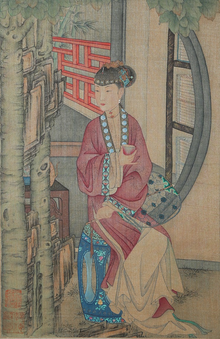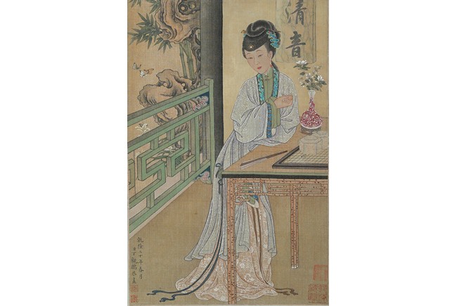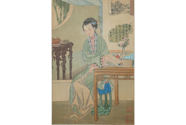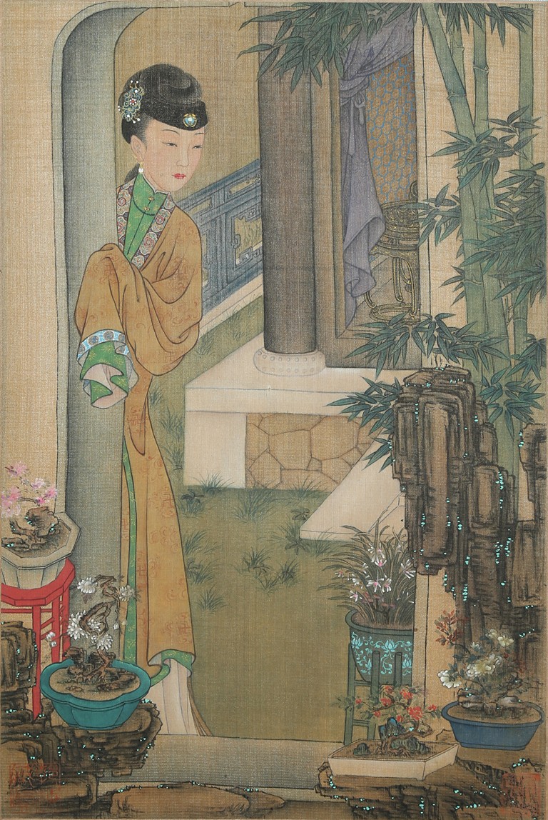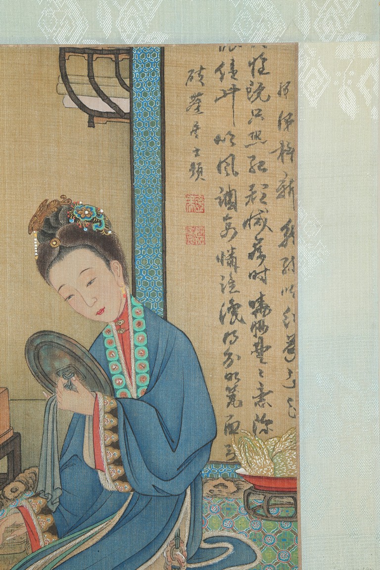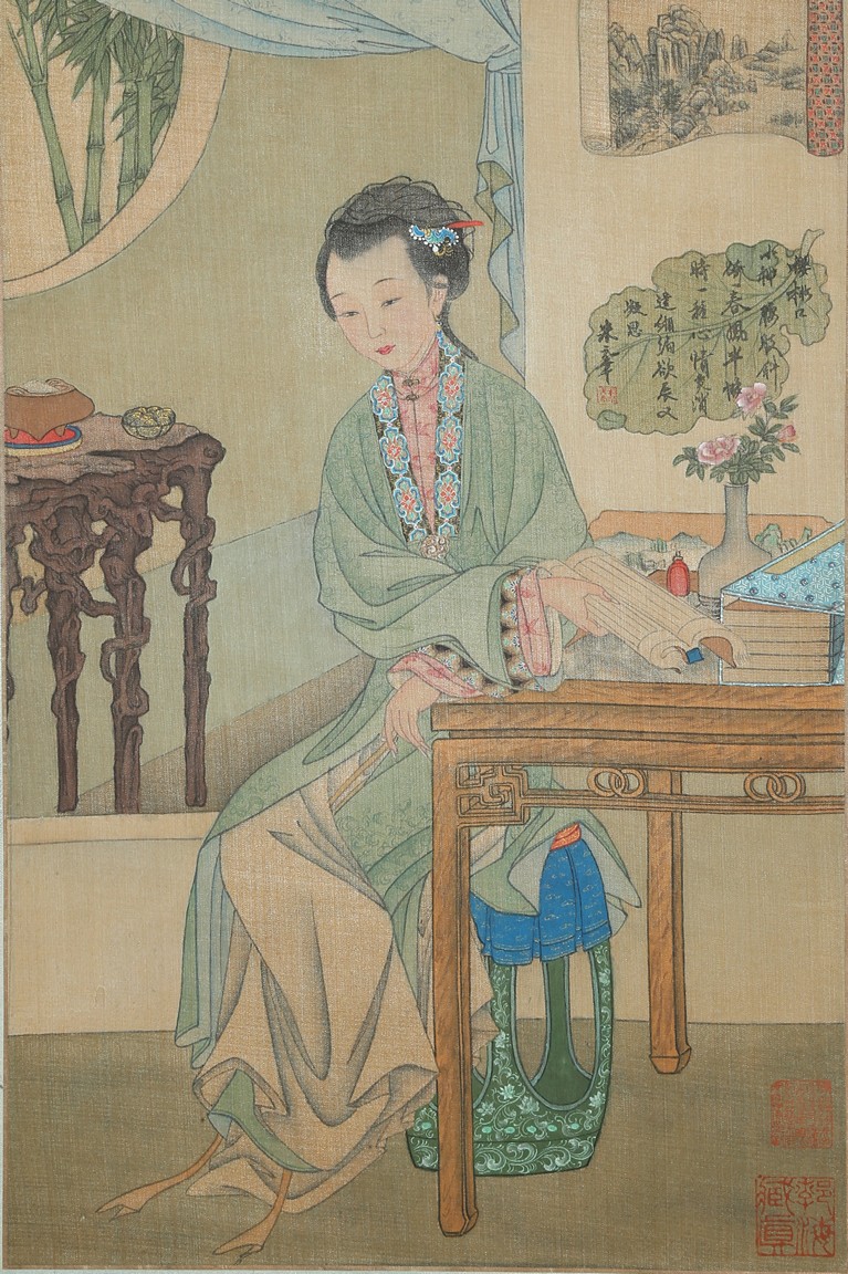 Color and ink on silk. Lady. Each with two seals of the artist, signed Ding Guanpeng, attributed to Ding Guanpeng.