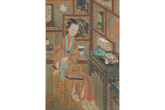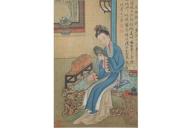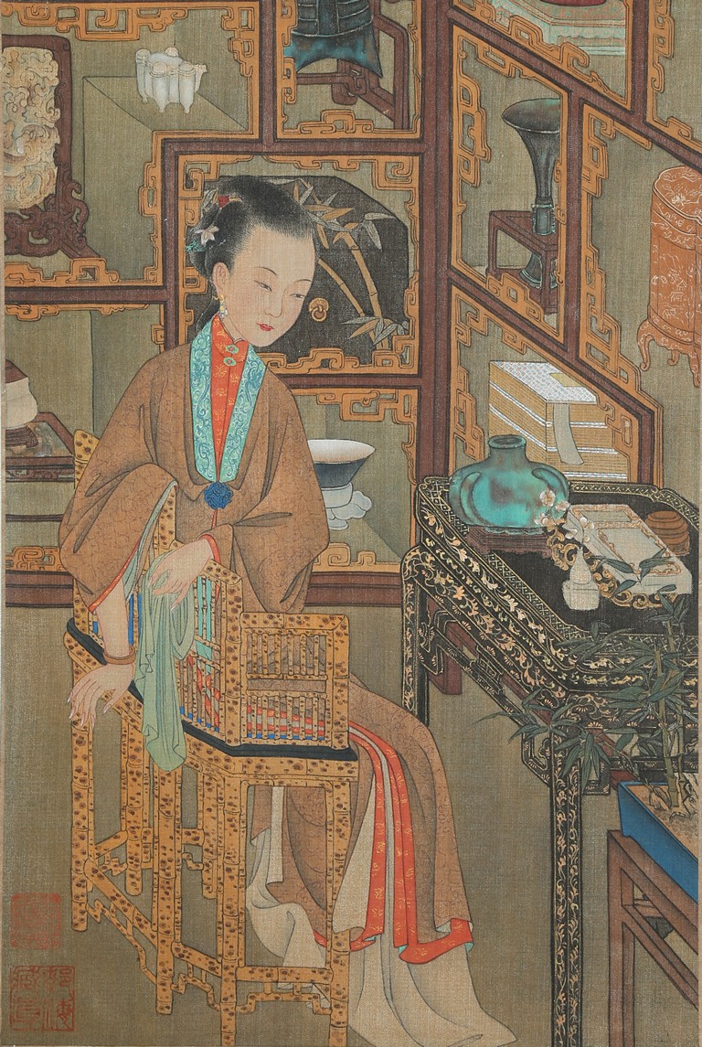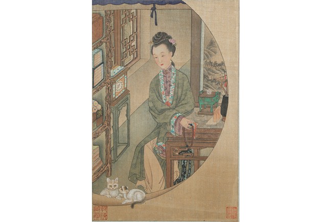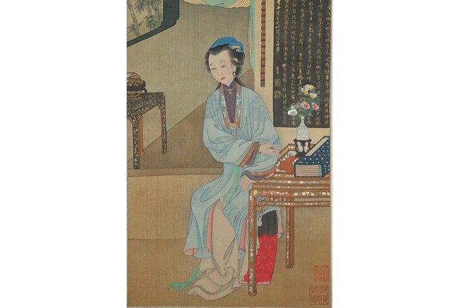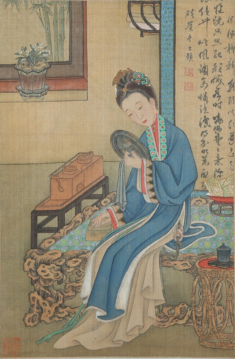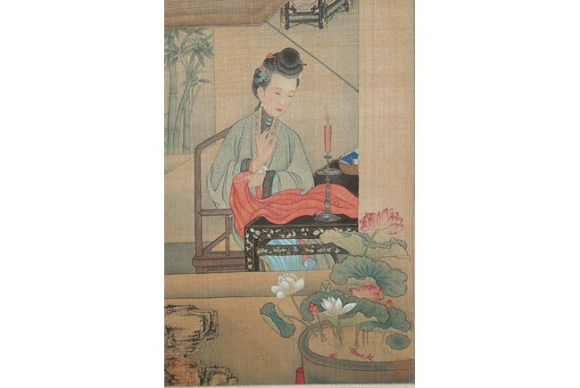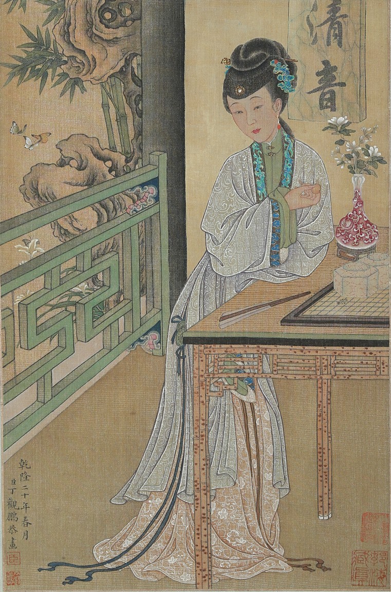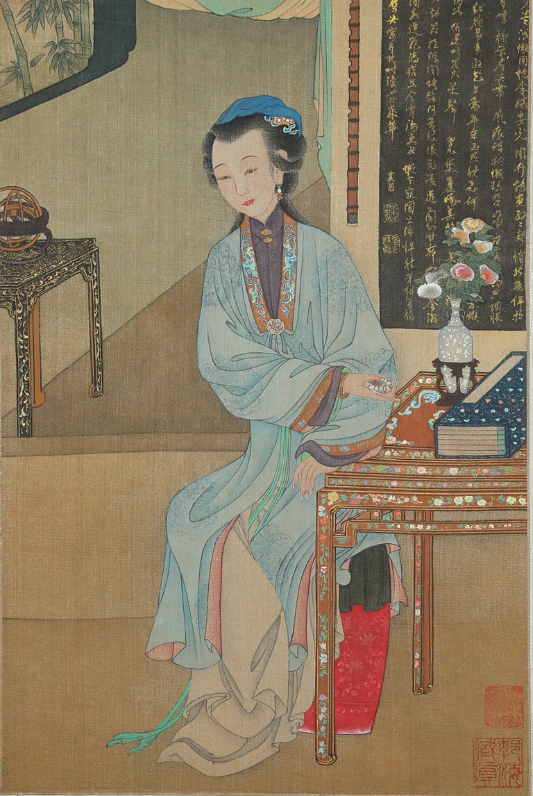 Color and ink on silk. Lady. Each with two seals of the artist, signed Ding Guanpeng, attributed to Ding Guanpeng.