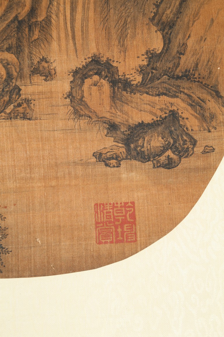 ANONYMOUS: COLOR AND INK ON SILK 'WATERFALL' PAINTING 無款 山水人物 設色絹本 鏡片