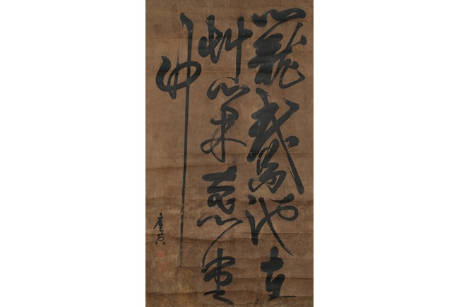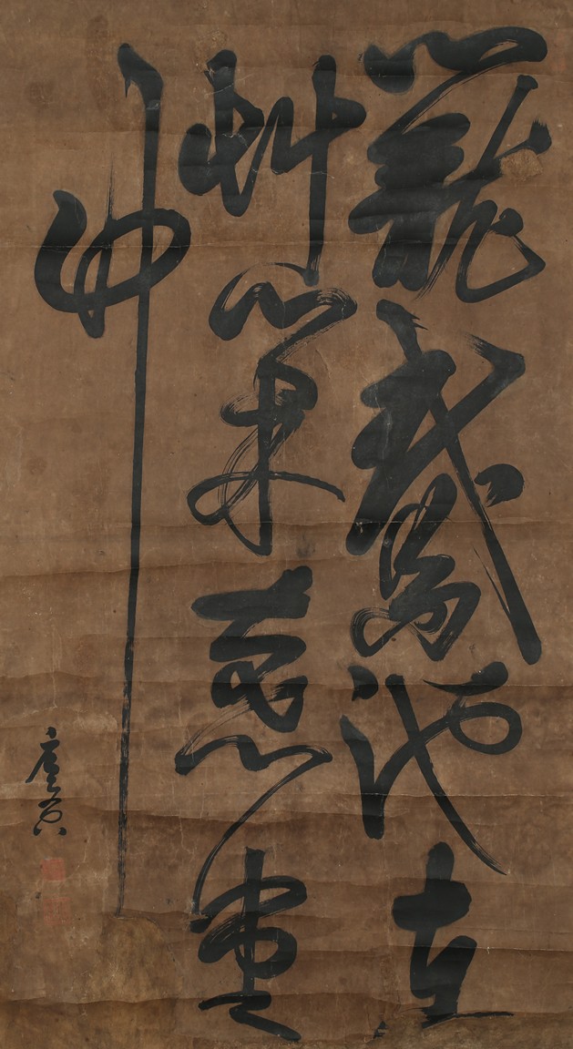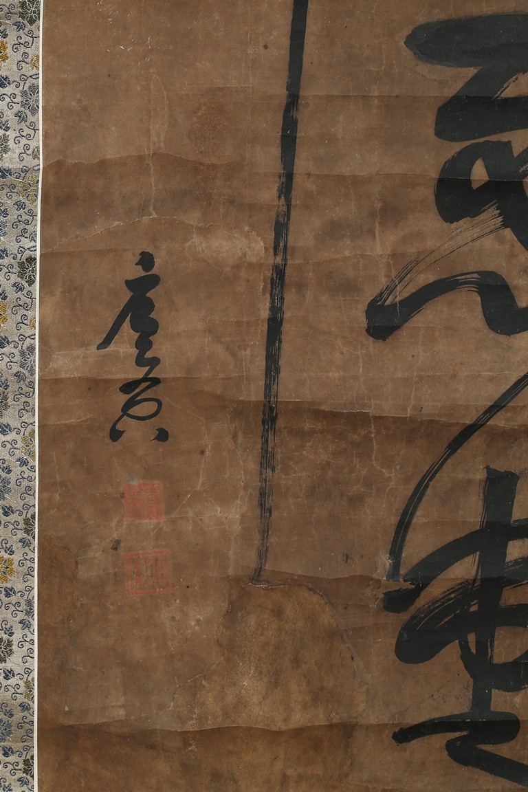 Ink on paper. Cursive script calligraphy. Hanging scrolling. Signed Tang Yin, with two seals of the artist.