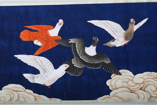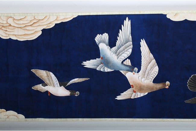 YU FEIAN: COLOR AND INK 'BIRDS' HANDSCROLL 于非闇 直上青霄 設色紙本 手卷