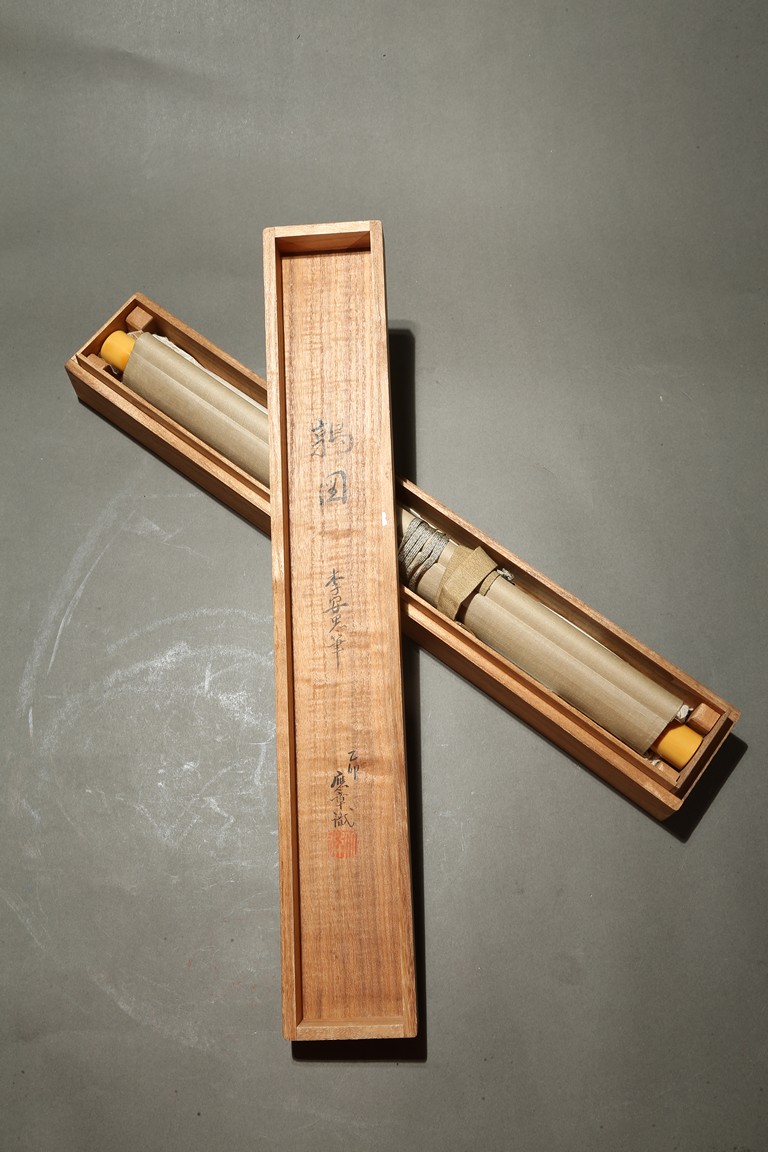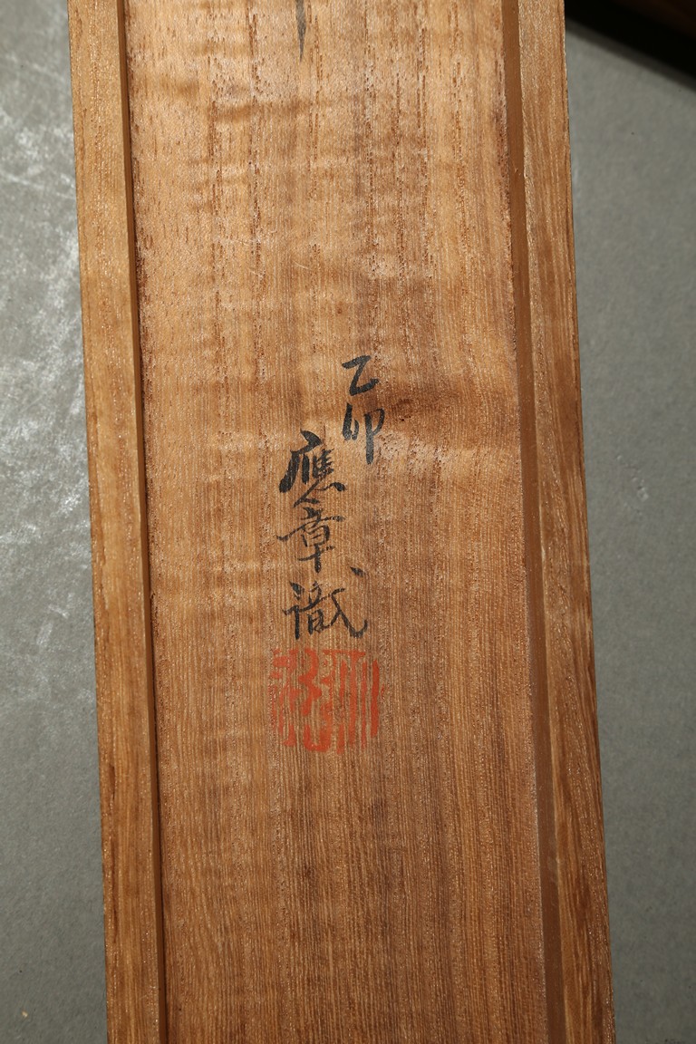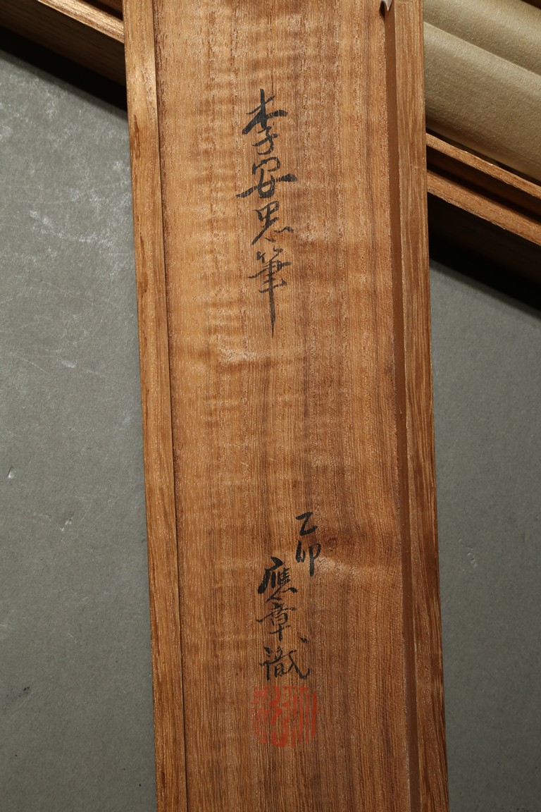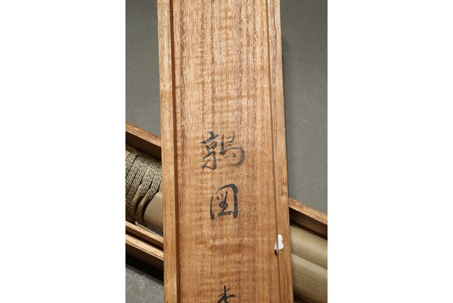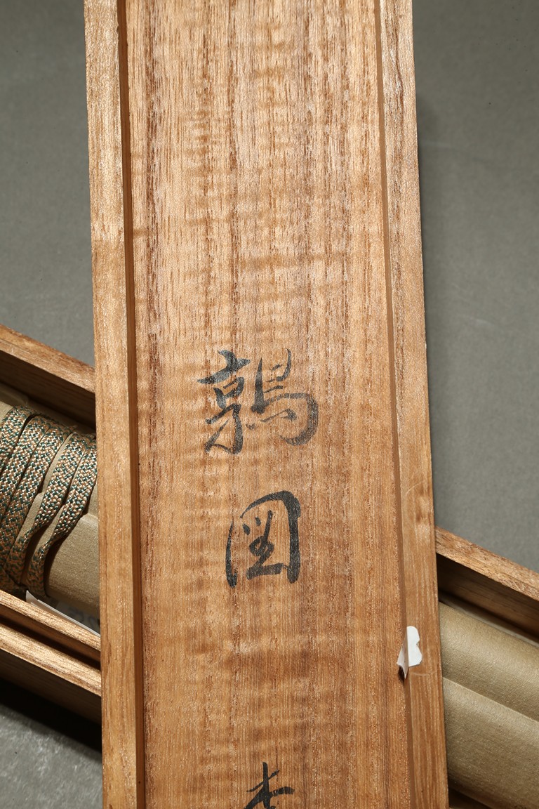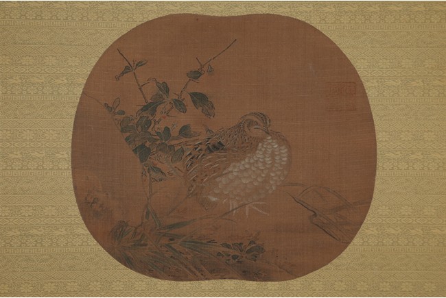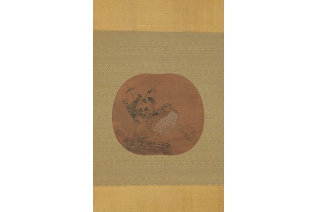 Color and ink on silk. Quail. Hanging scrolling, unsigned and with seal of the artist. Attributed to Li Anzhong, accompanied by original Japanese wood box.