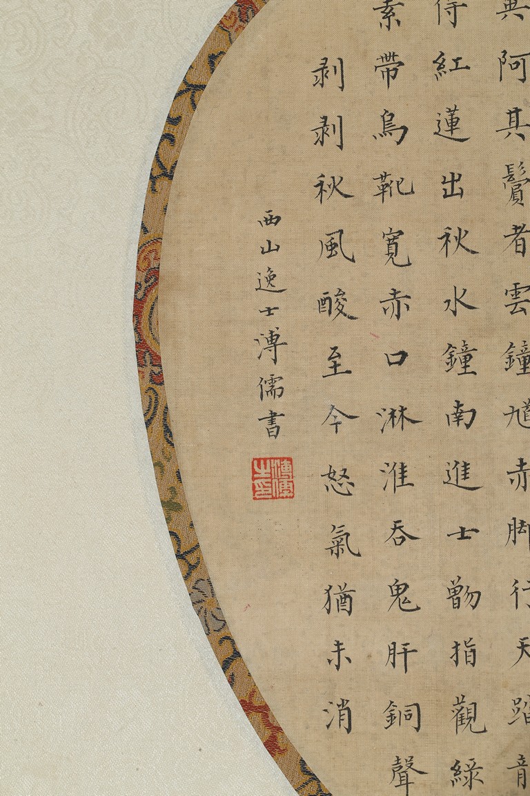 PU RU: INK ON SILK 'REGULAR SCRIPT' CALLIGRAPHY 溥儒 楷書 絹本 圓扇