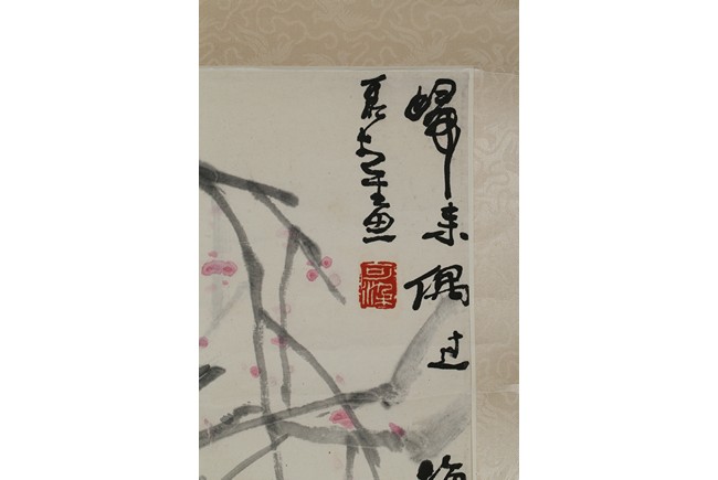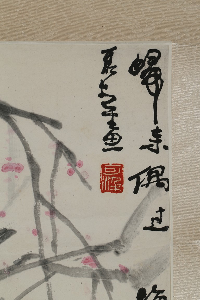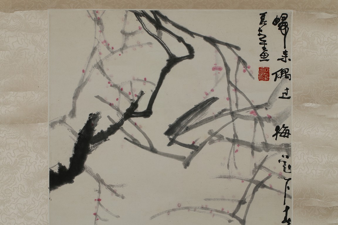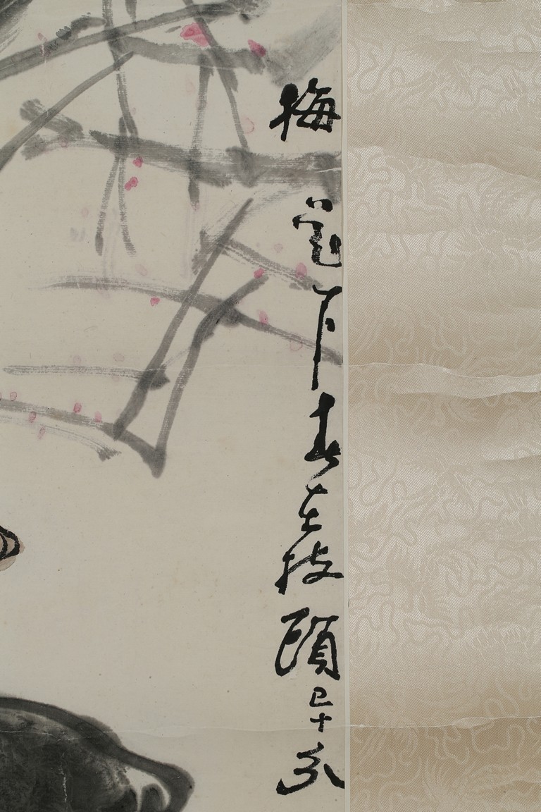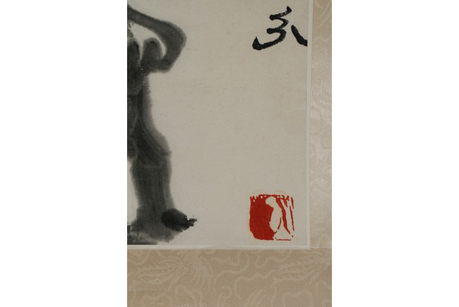 Color and ink on paper. Buffalo. Hanging scrolling. Inscribed and signed with two seals of the artist.