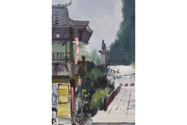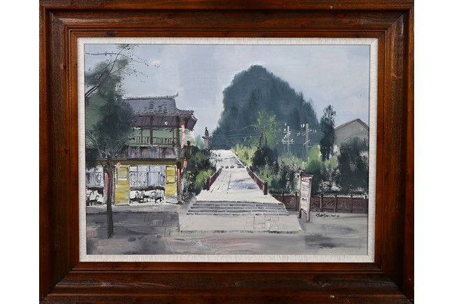 AN OIL ON CANVAS 'MOUNTAIN LUOHAN' PAINTING 羅漢山 油畫