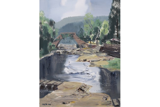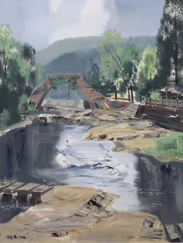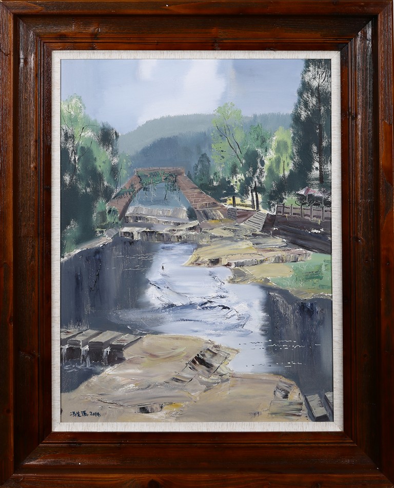 AN OIL ON CANVAS PAINTING 上里二仙橋