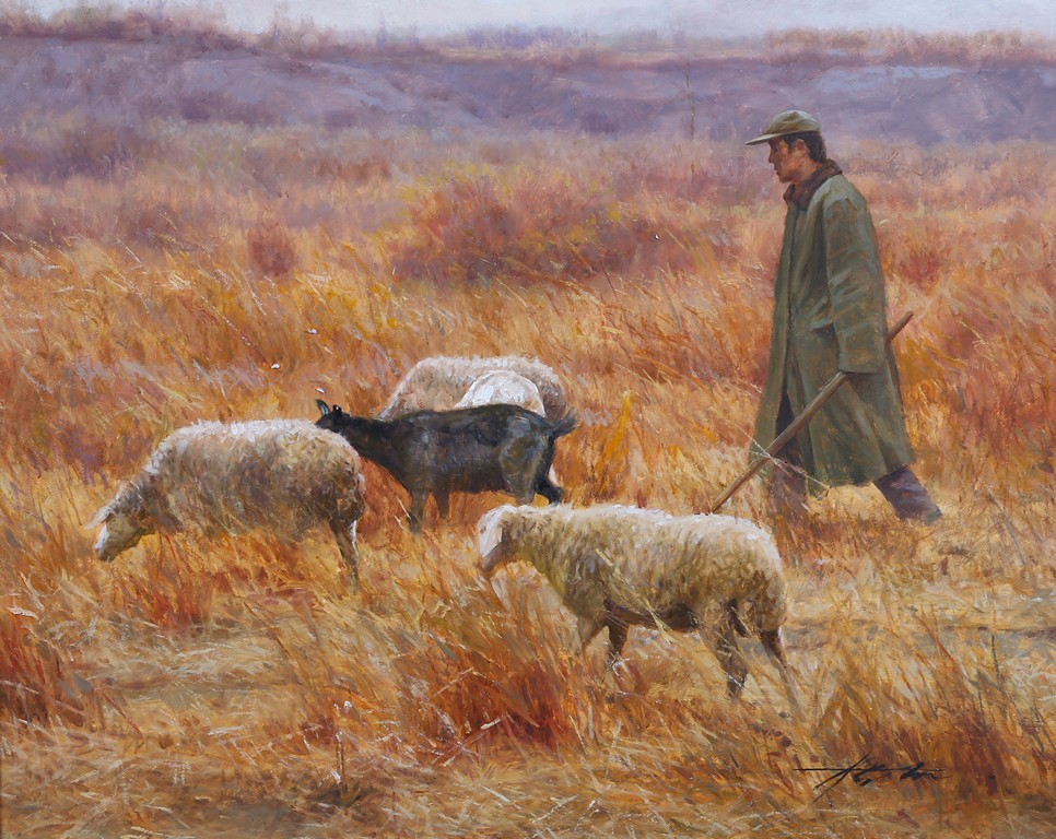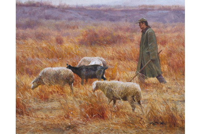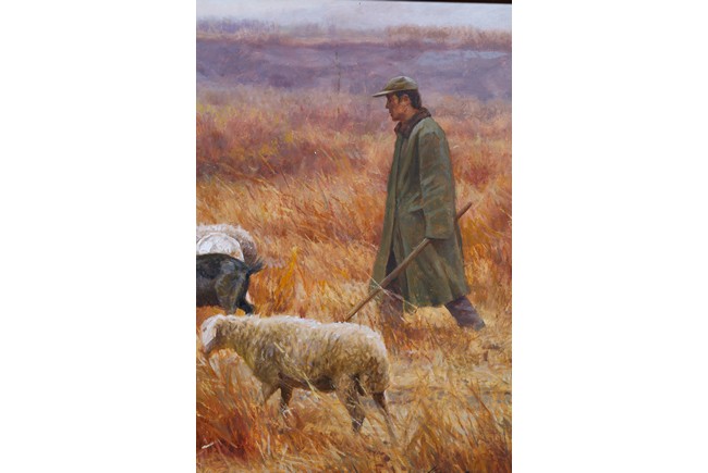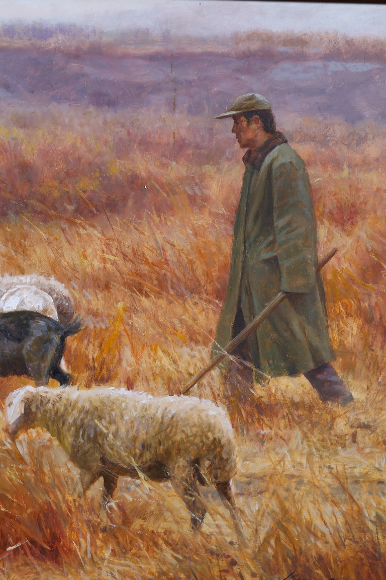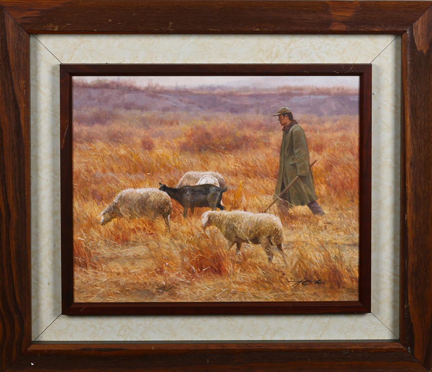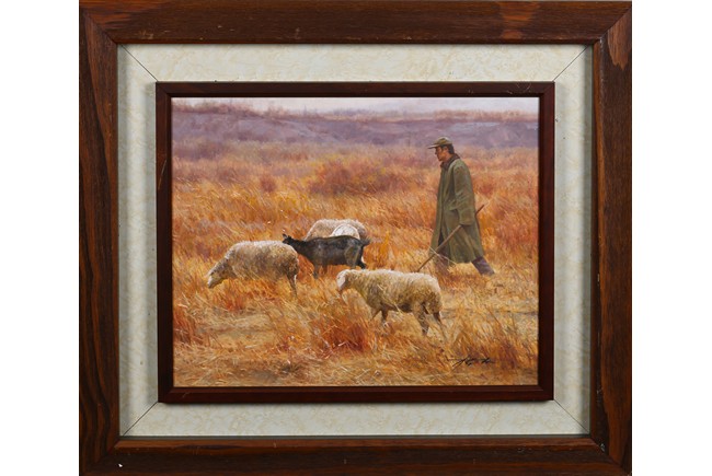 AN OIL ON CANVAS PAINTING 牧羊人 油畫