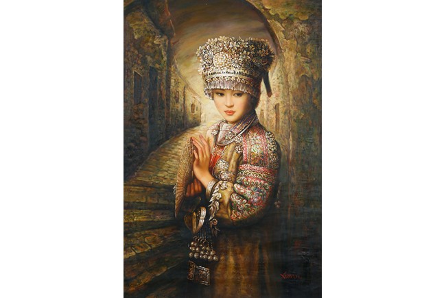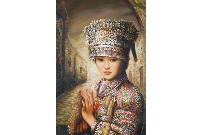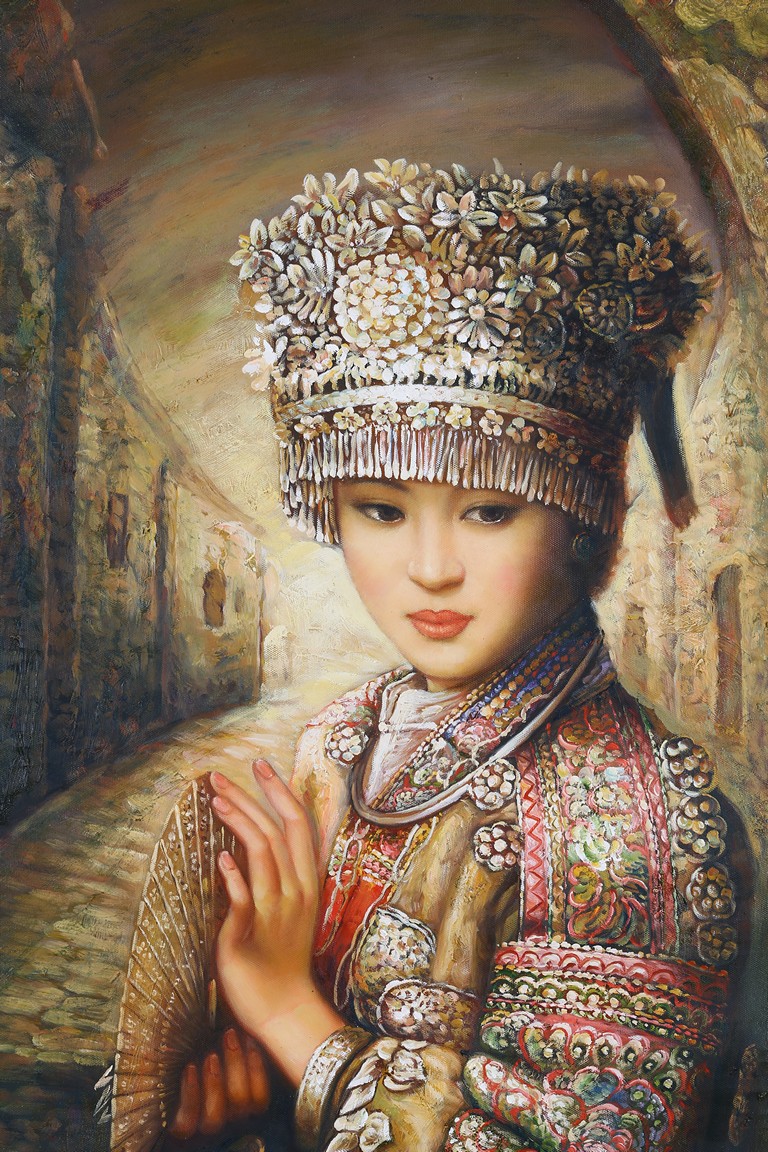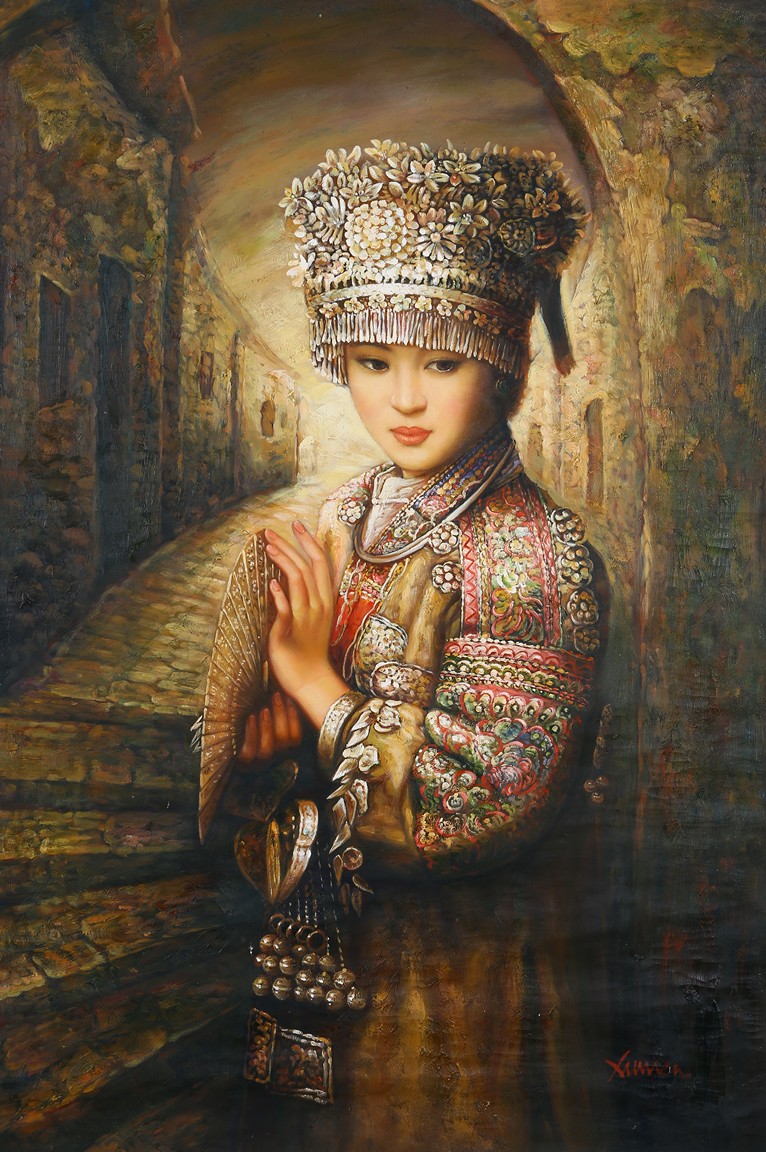 Chinese. Oil on canvas. Yi Girl. Framed, signed on the lower right corner.
