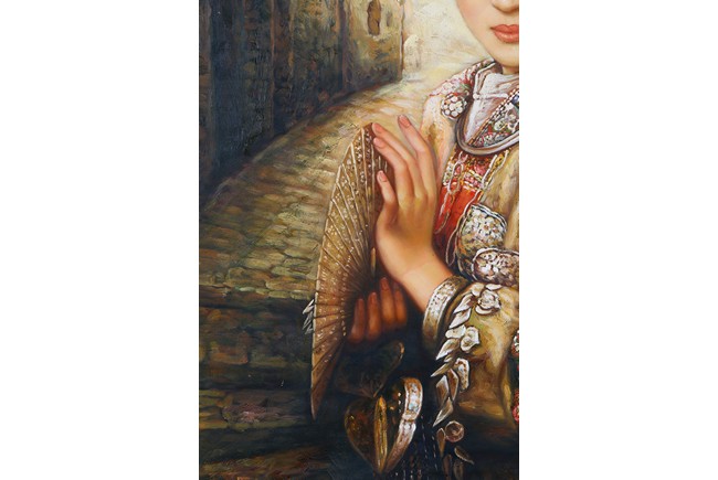 AN OIL ON CANVAS 'YI GIRL' PAINTING 彝族少女 油畫