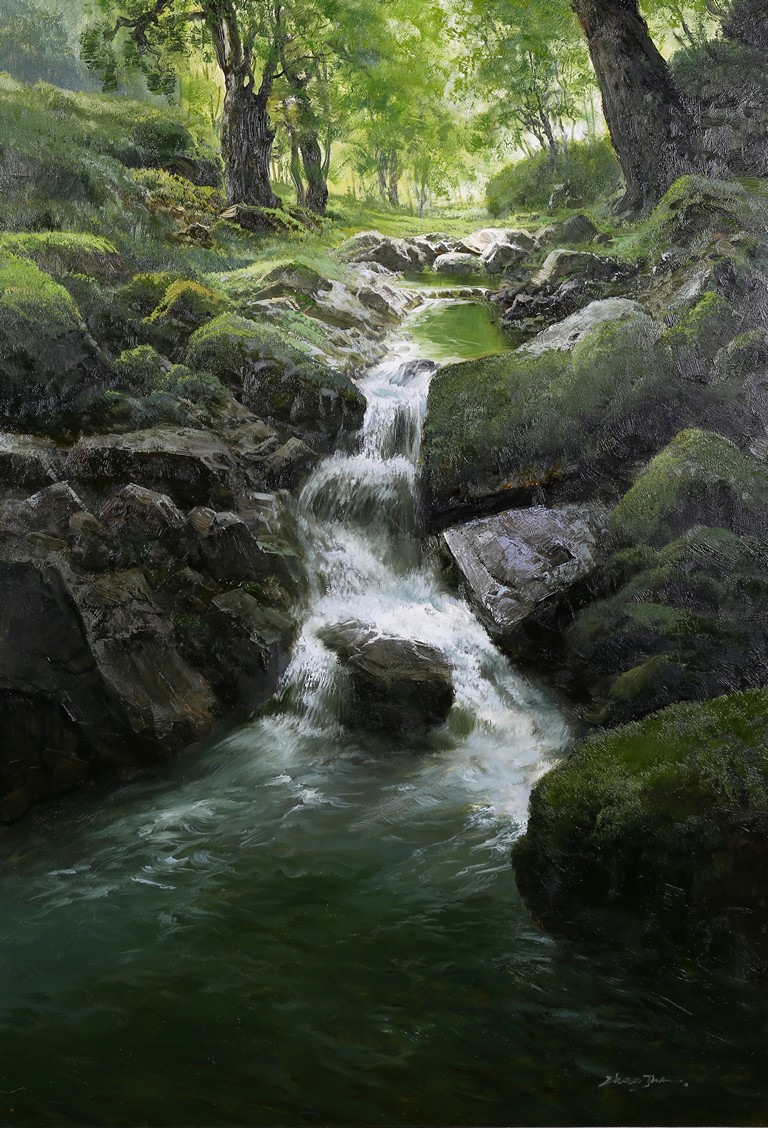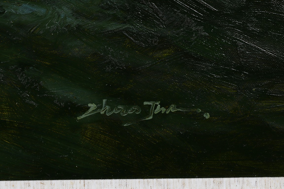 Chinese. Oil on canvas. Landscape. Framed. Signed Zhao Jun on the lower right.