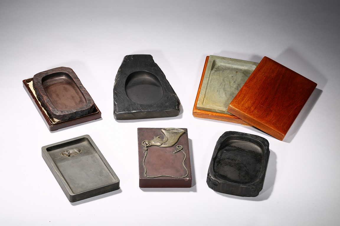 Consisting of six inkstones in various material and forms. Qing Dynasty period/Republic period.