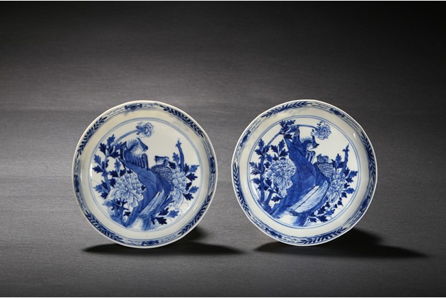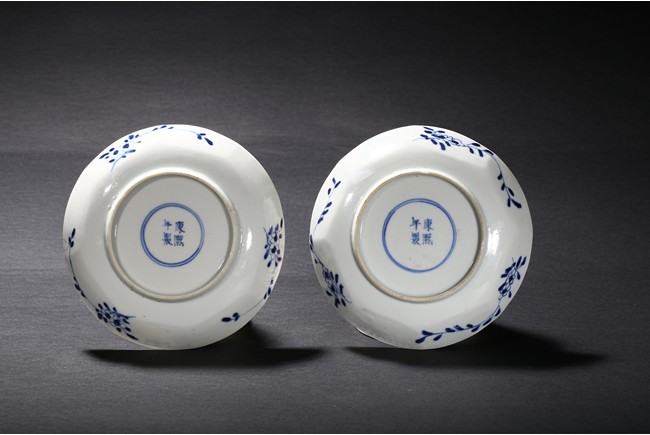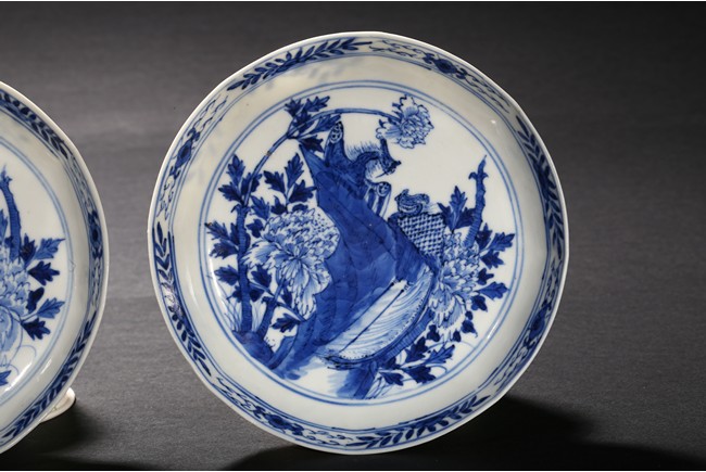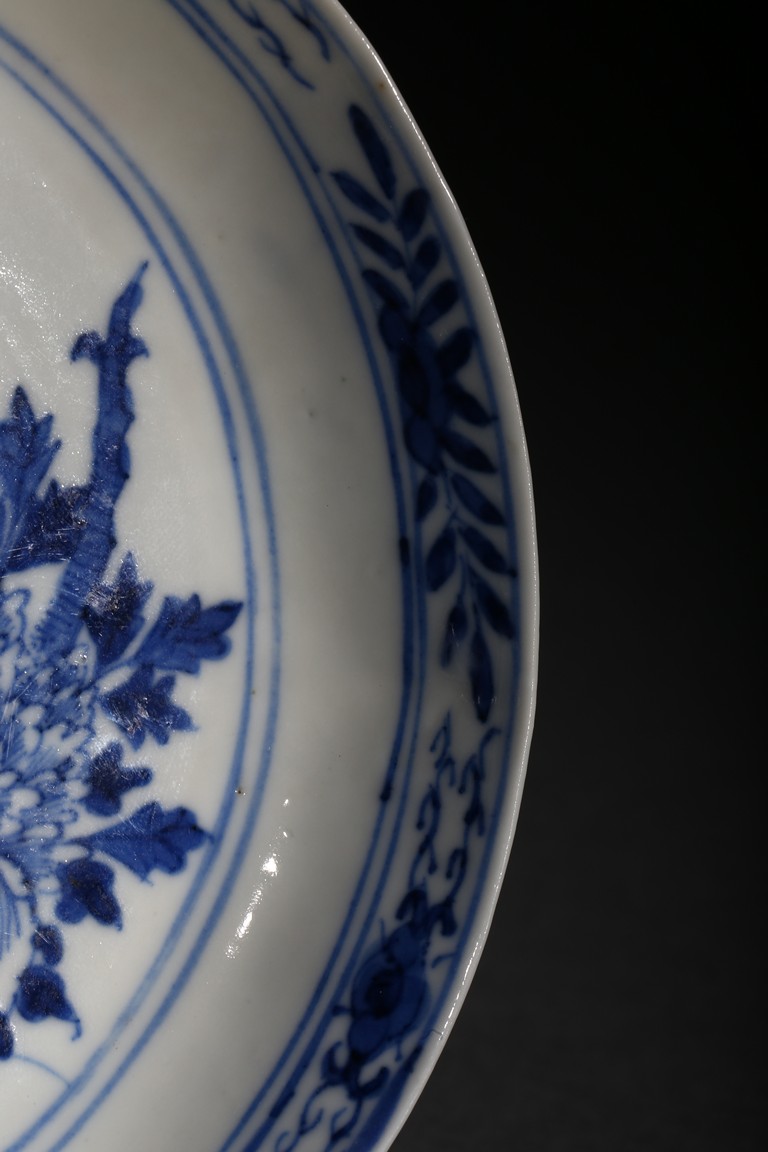 A PAIR OF BLUE AND WHITE 'PHOENIX' DISHES    清 青花鳳鳥紋盤一對