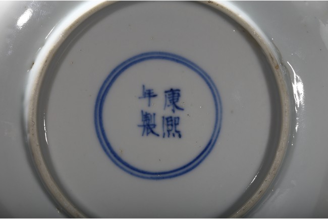 Each dish finely enamelled with two phoenix in a garden scene, base with four character Kangxi mark. Qing Dynasty period.