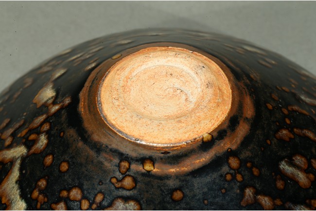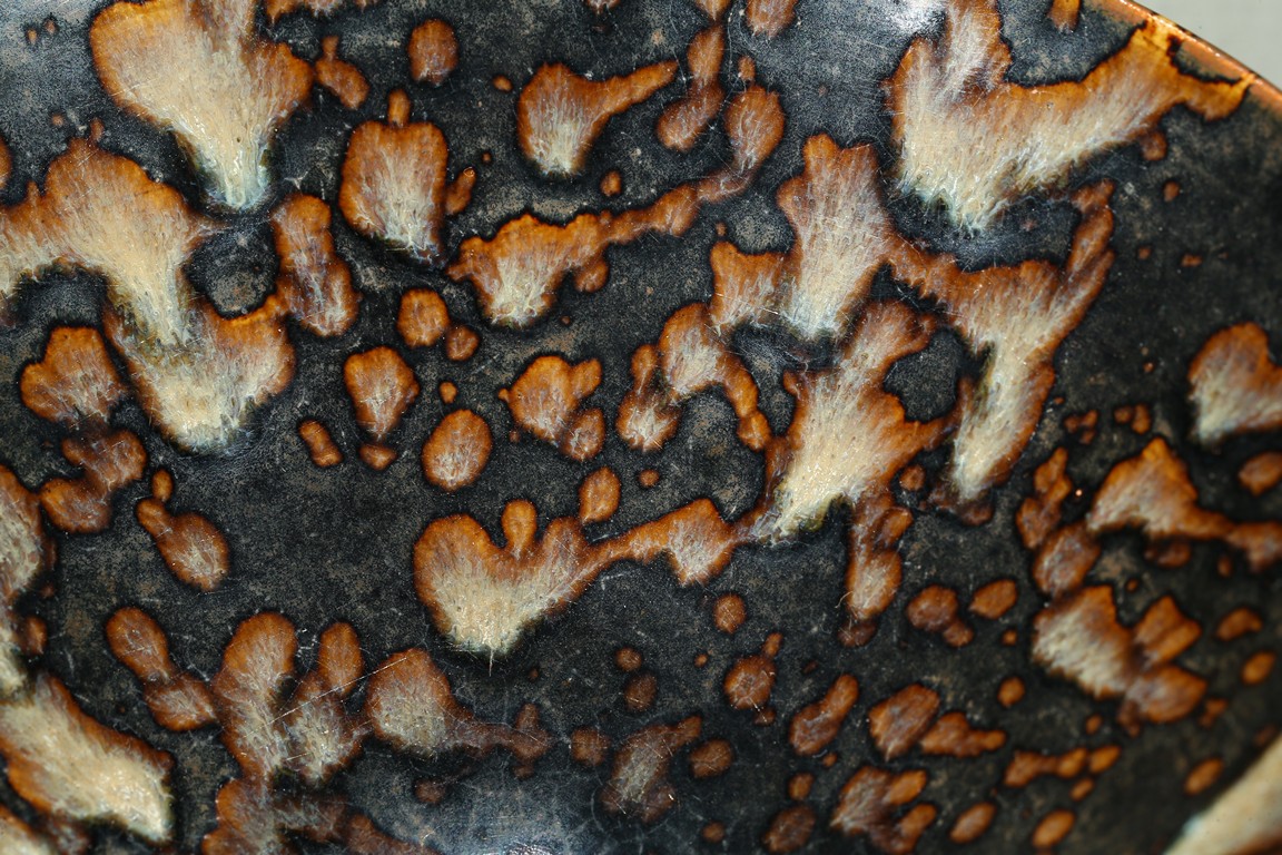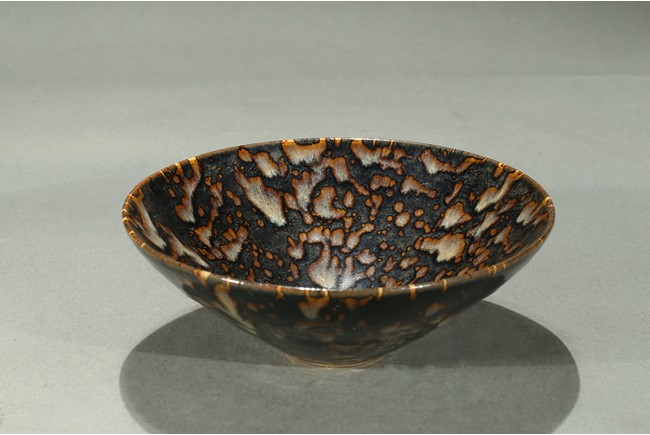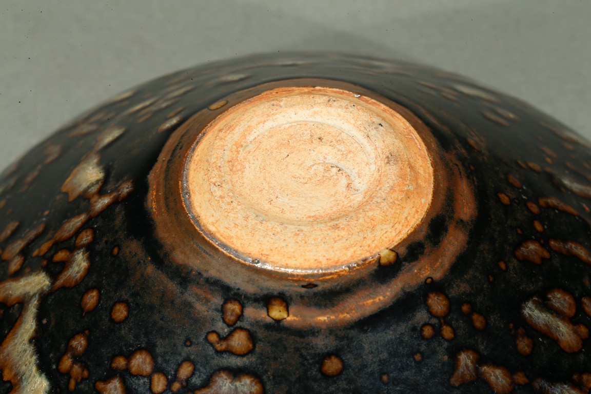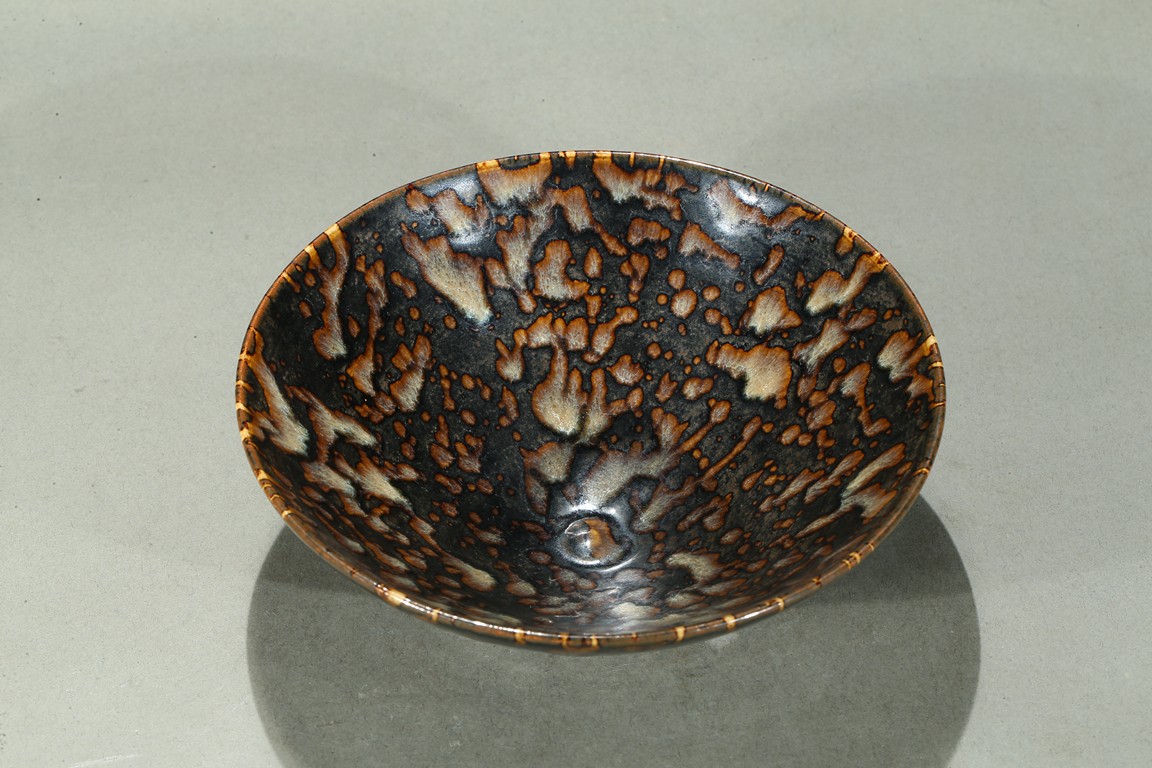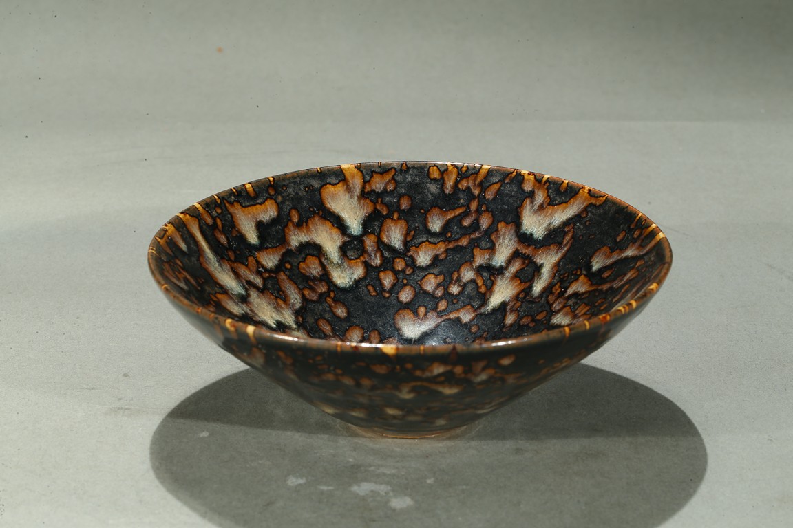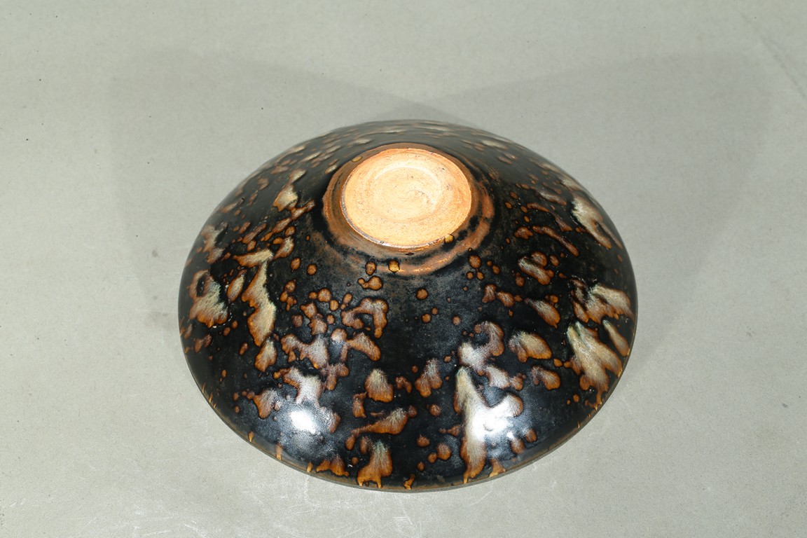 Covered inside and out with a rich dark brown glaze and liberally splashed in tawny tones in imitation of tortoiseshell, the glaze stopping short of the foot. Song Dynasty period.