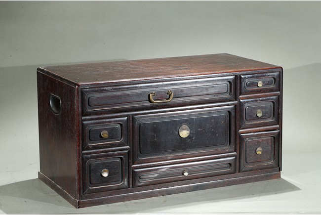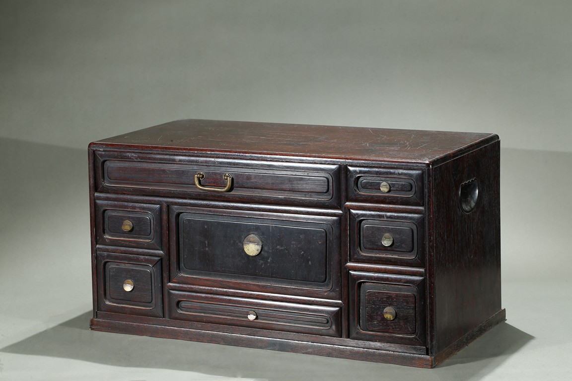 Of rectangular form and arranged with eight drawers of different size. Qing Dynasty period.