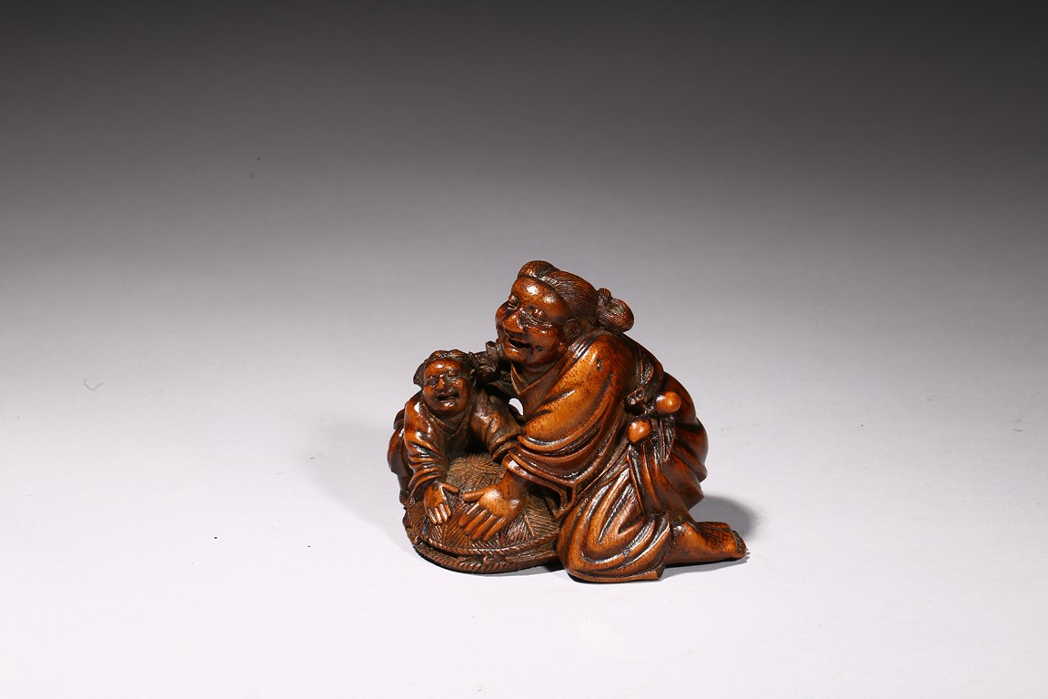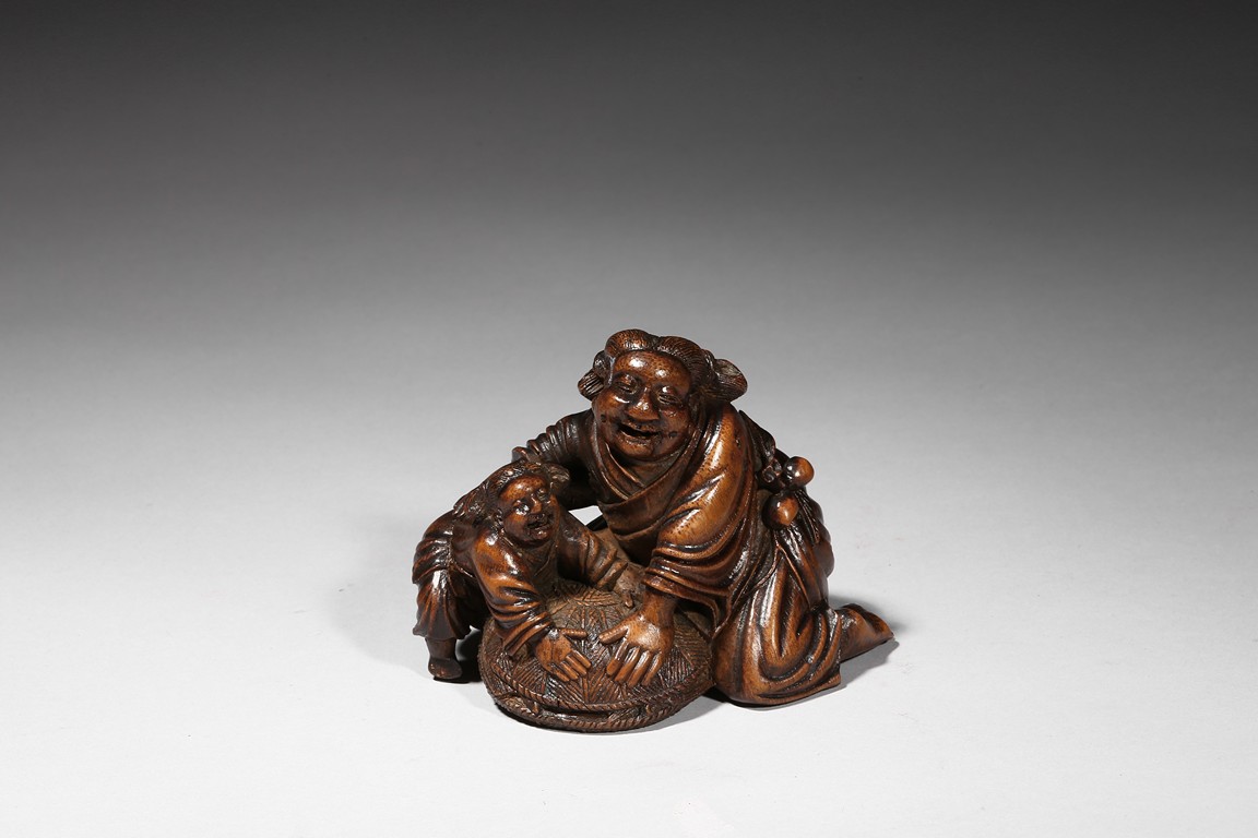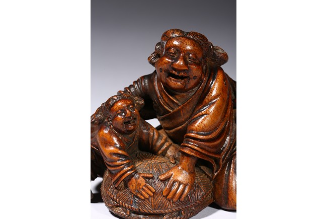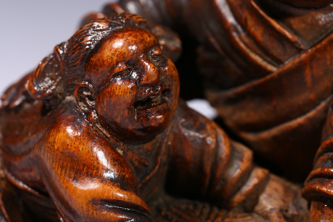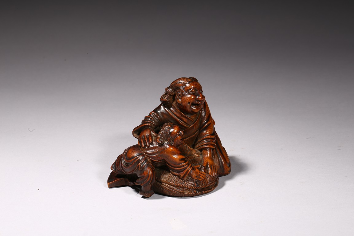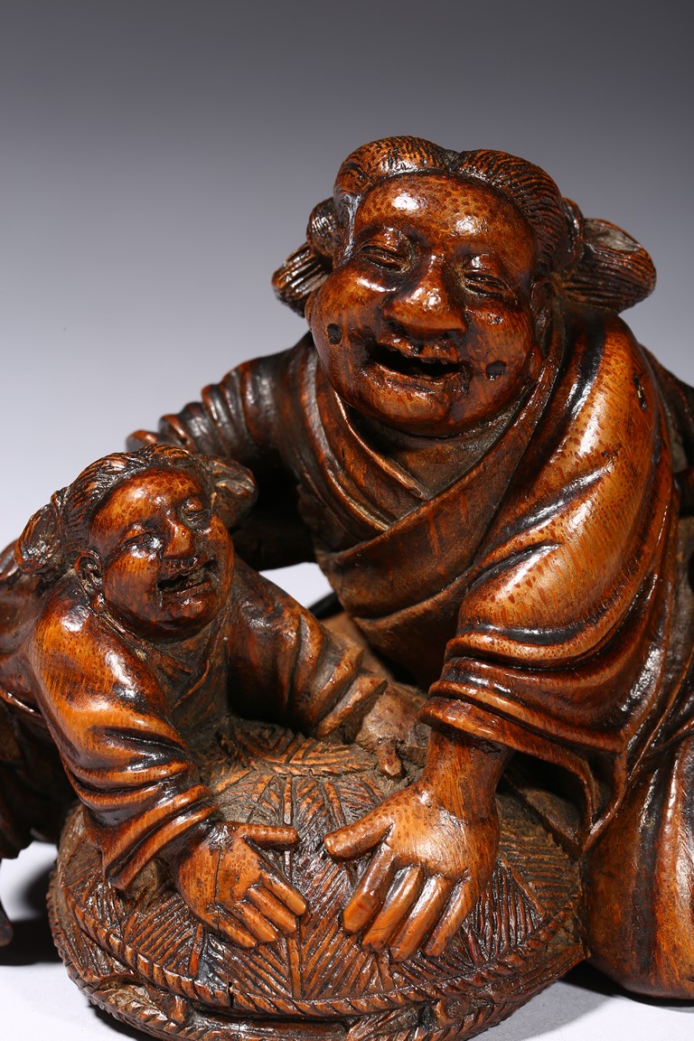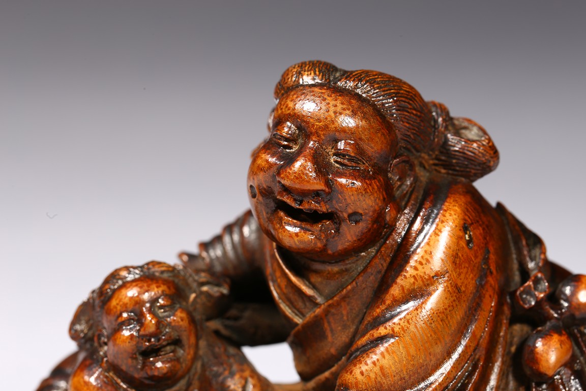A BAMBOO CARVING OF FIGURAL GROUP 清 竹雕和合二仙