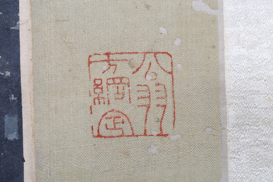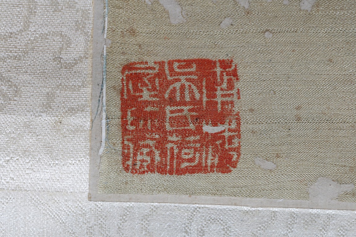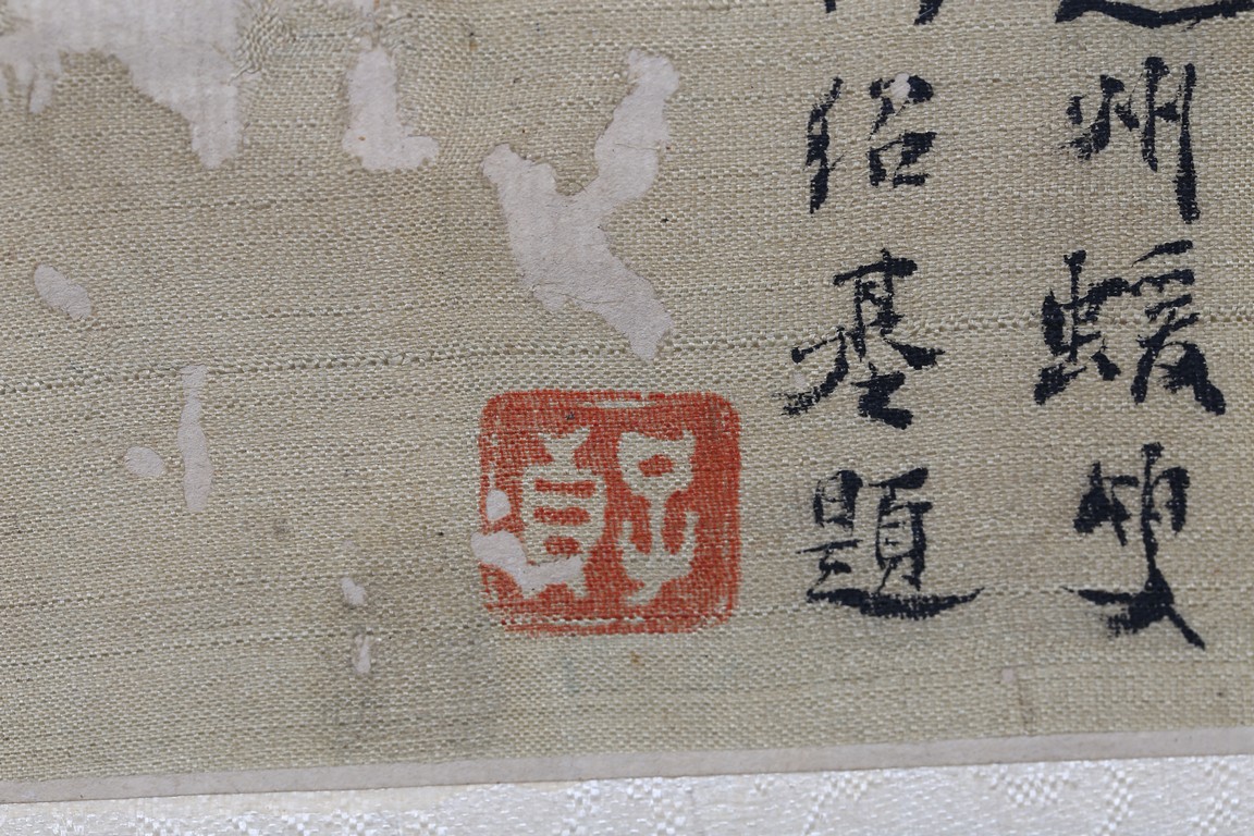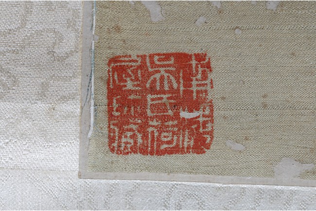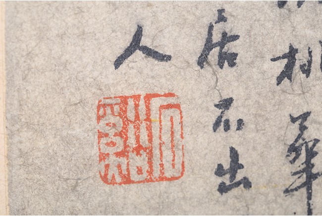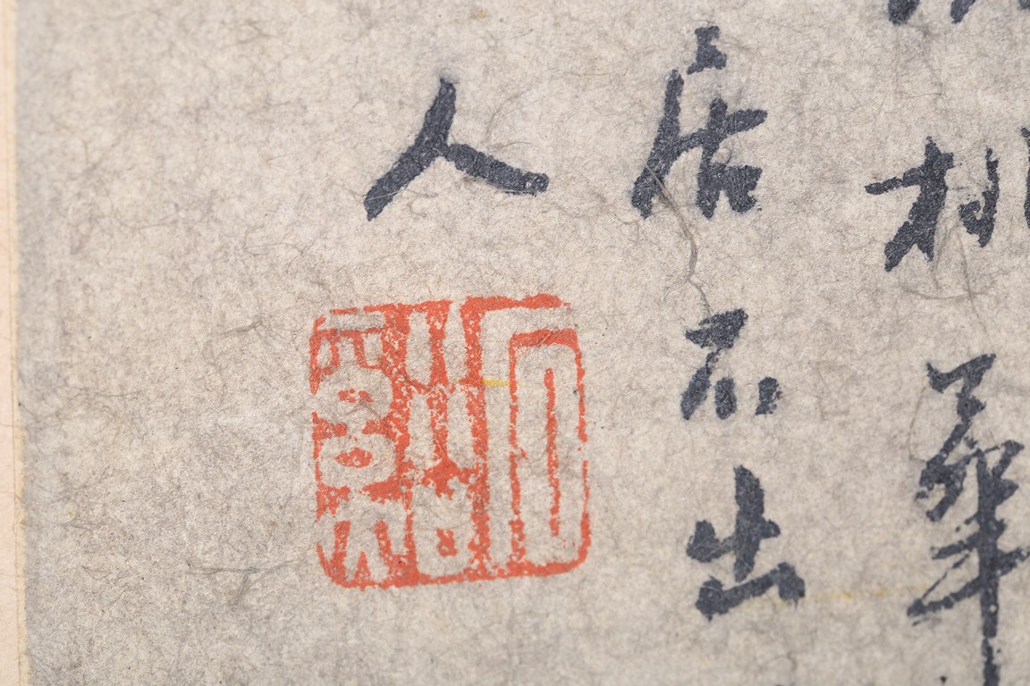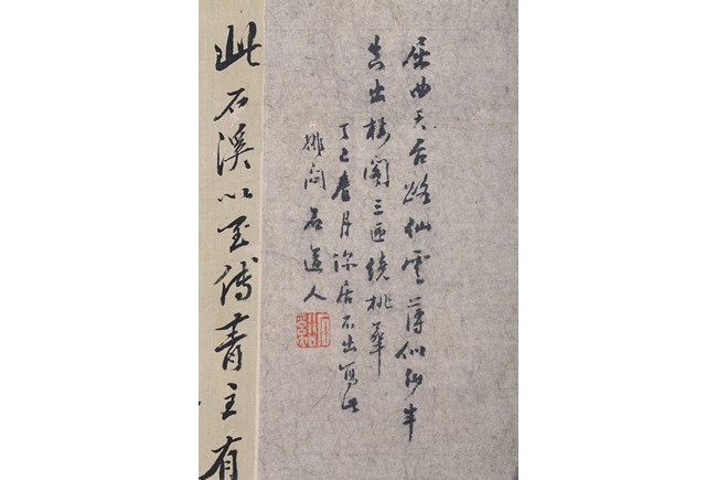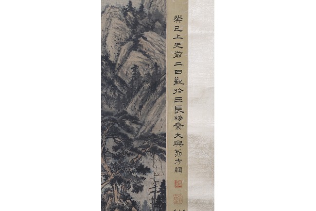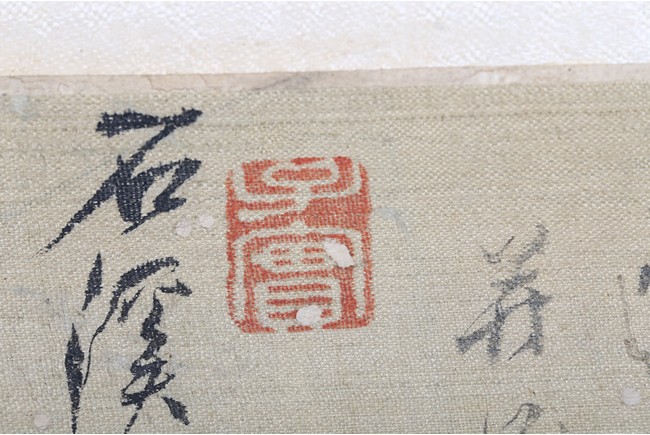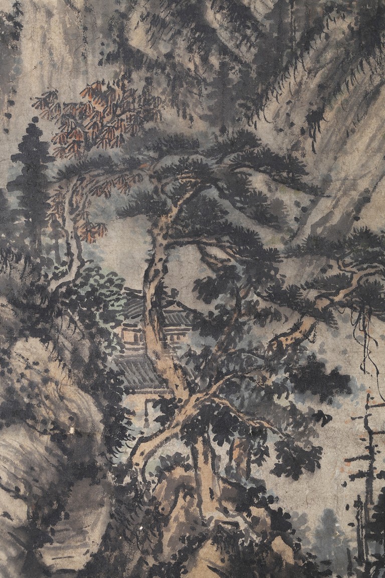 Color and ink on paper. Landscape. Hanging scroll. Inscribed and signed Shi Dao Ren, with two seal marks of the artist. Colophon signed Weng Fanggang, He Shaoji, Wu Ronggang, etc, with total ten seal marks.