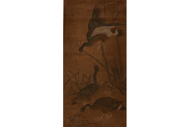 ANONYMOUS: COLOR AND INK ON SILK PAINTING 無款 蘆雁圖 絹本 立軸