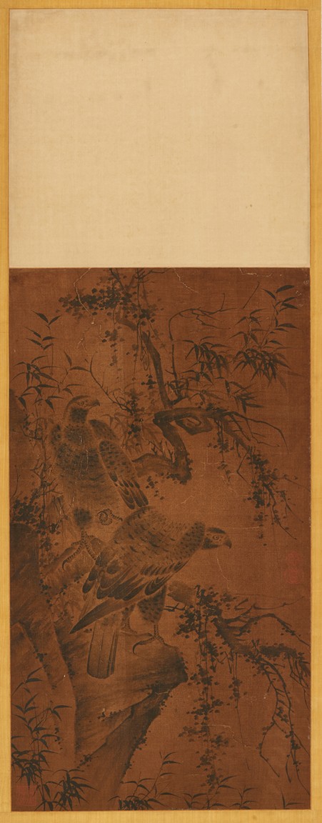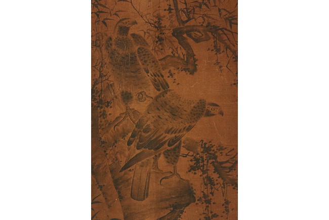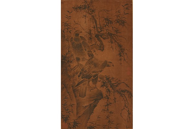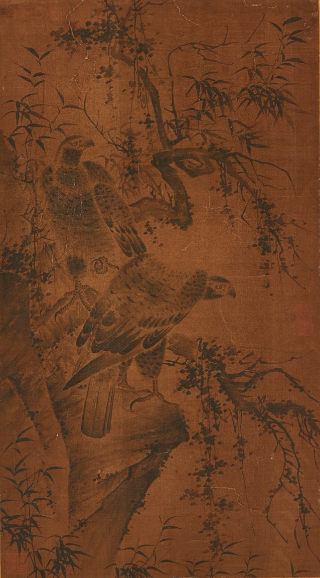 Ink on silk. Eagle. Mounted for framing. Anonymous. With two seal marks.