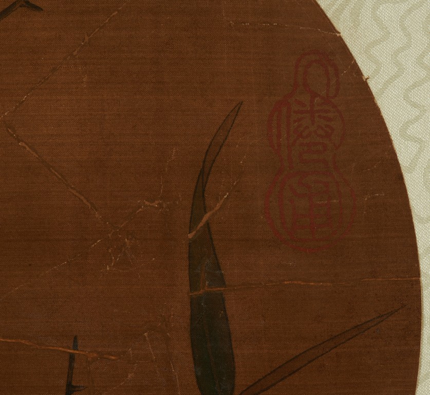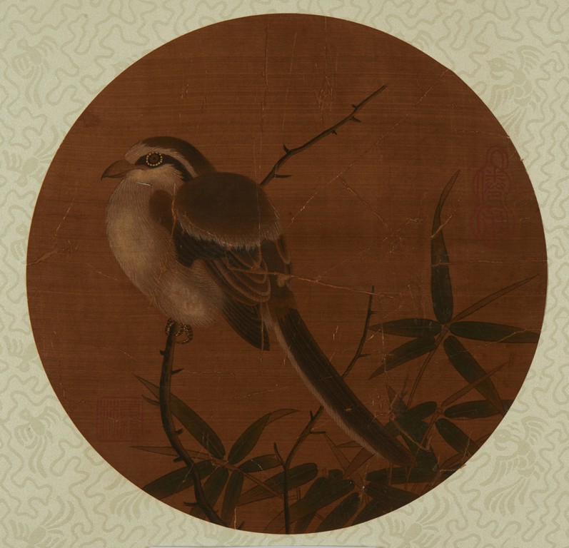 Color and ink on silk. Bird. Mounted for framing. Anonymous. With two seal marks.