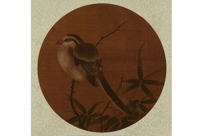 A COLOR AND INK ON SILK ‘BIRD’ FAN PAINTING 無款 竹鳥 設色絹本 圓扇