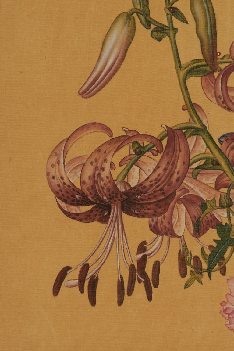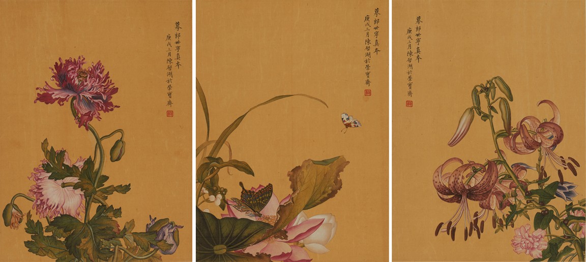 CHEN QIHU: THREE ‘FLOWERS’ COLOR AND INK ON SILK PAINTINGS 陳啟湖 工筆花卉三張 設色絹本