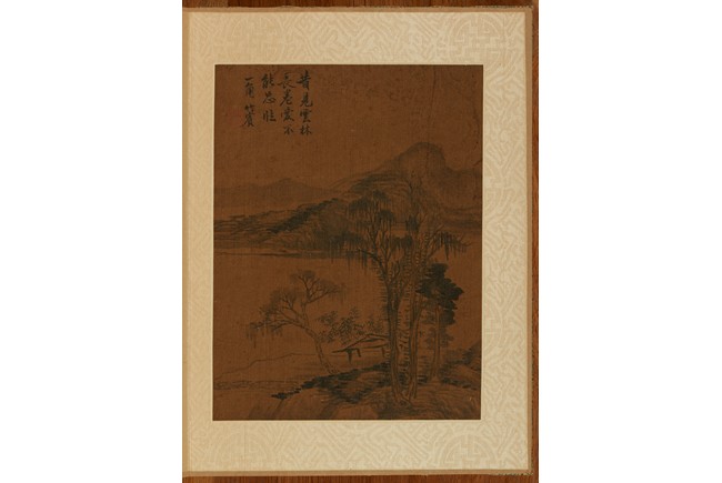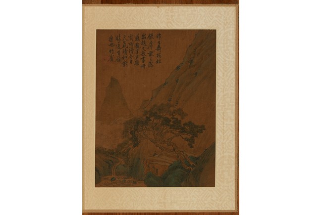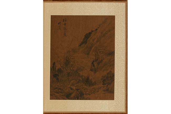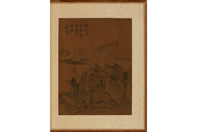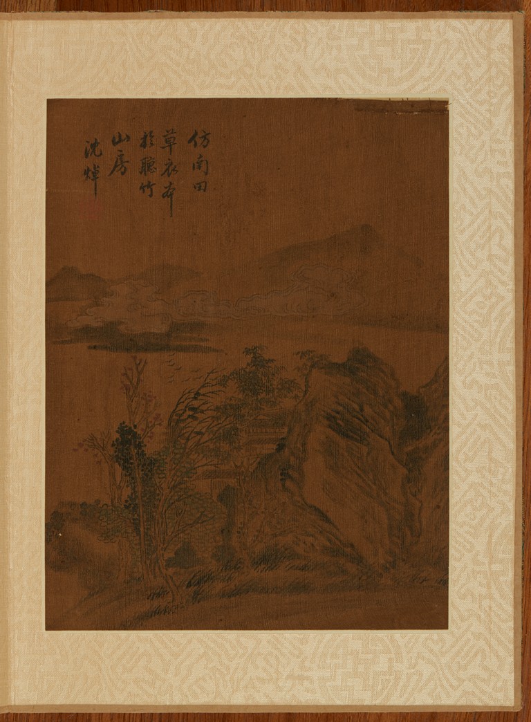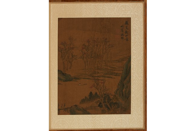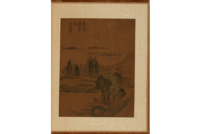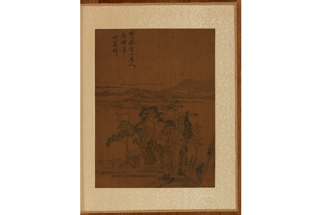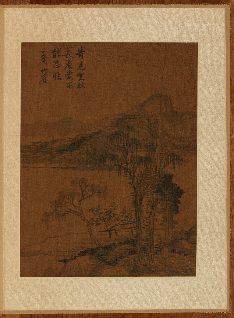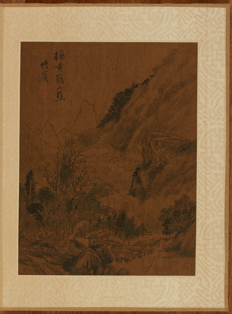 Color and ink on silk. Landscape. Eight leaves album. Inscribed and signed Zhu Bin, with ten seals of the artist.