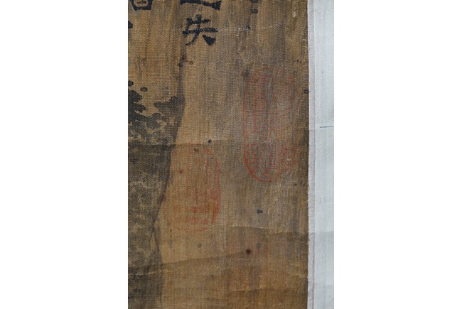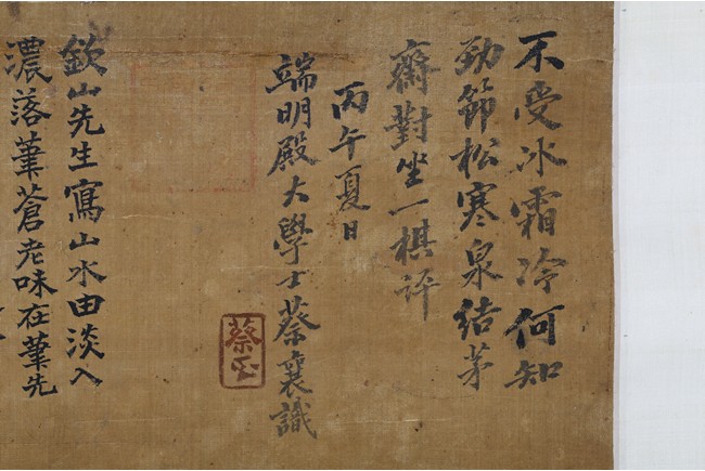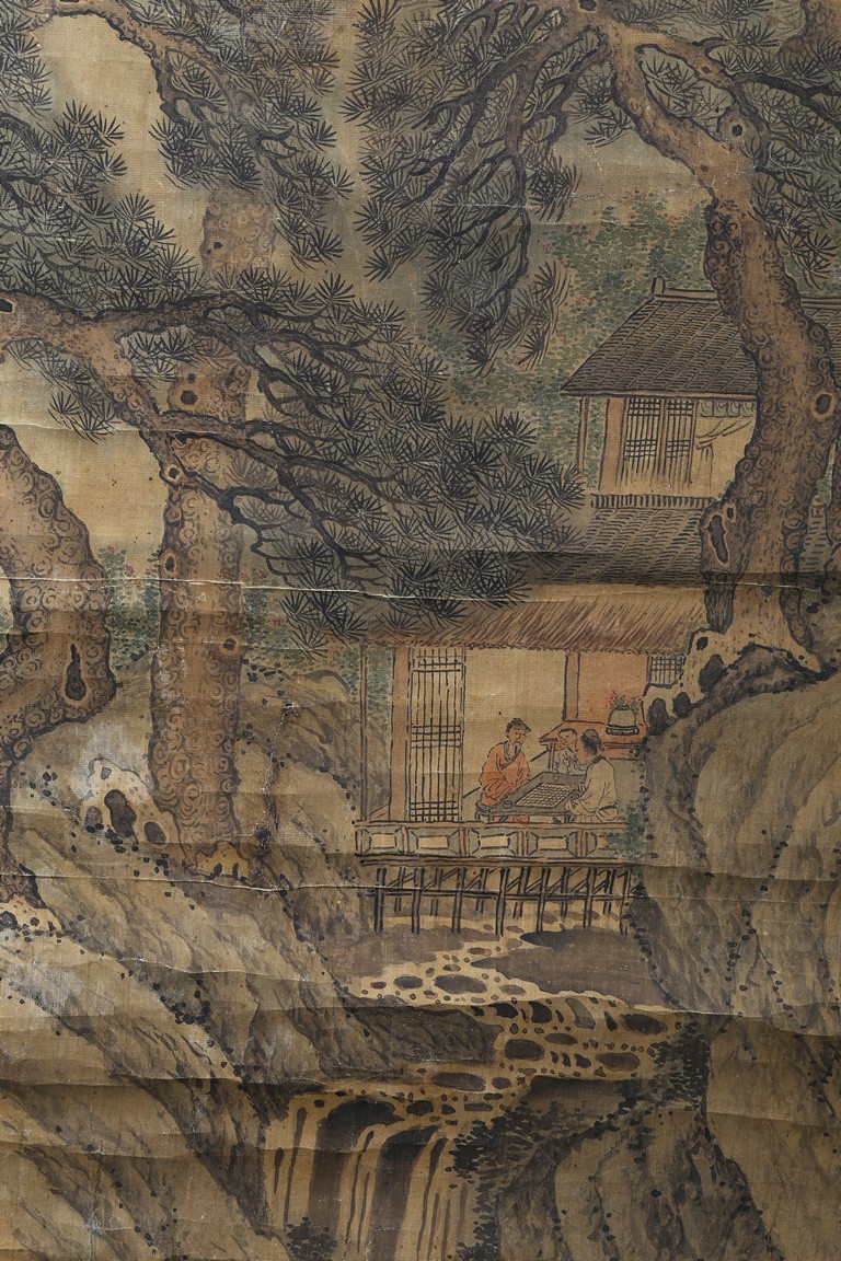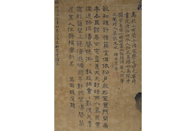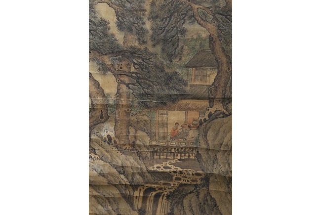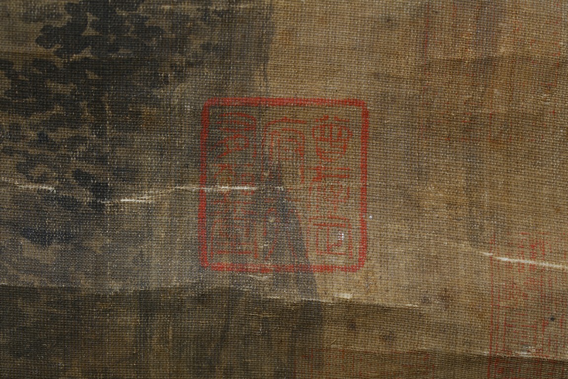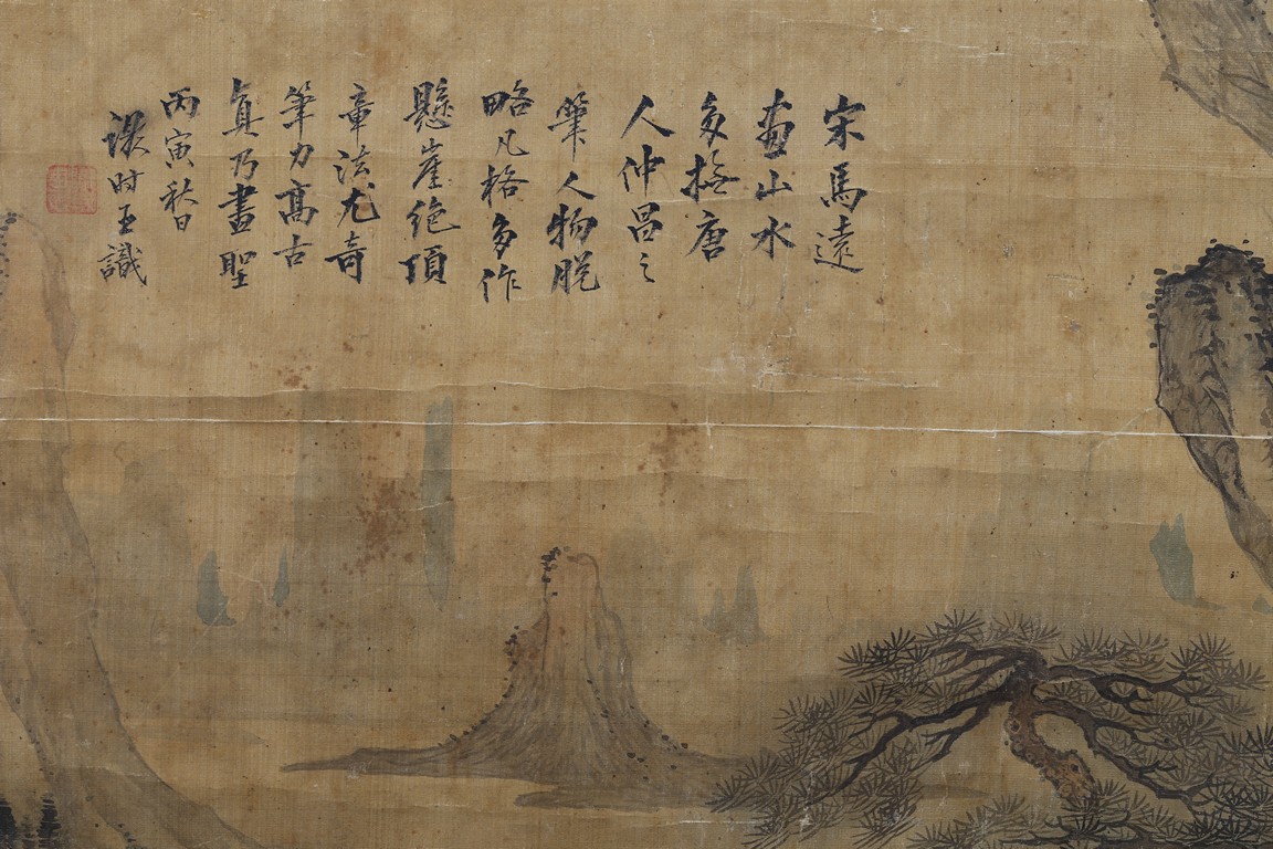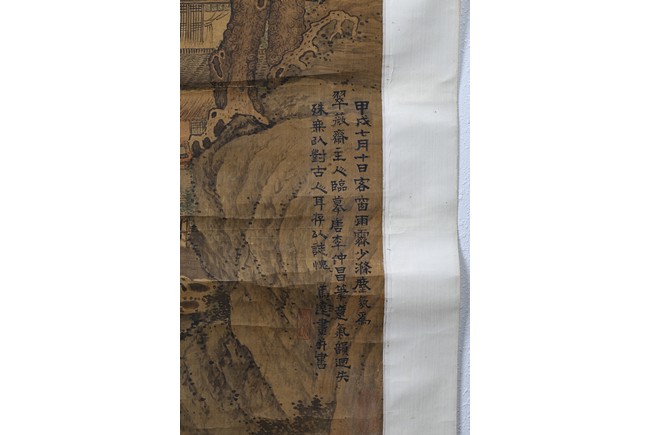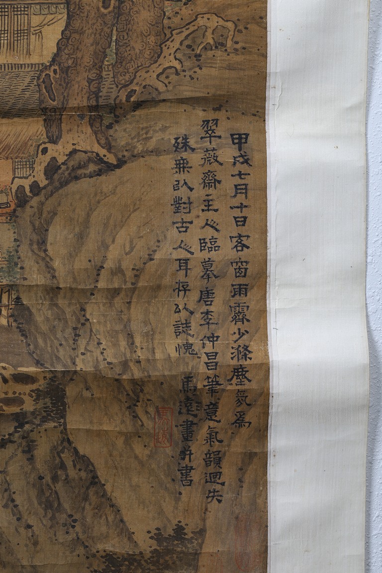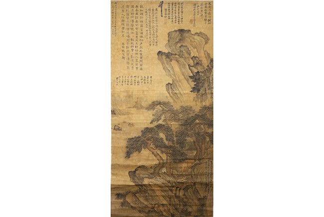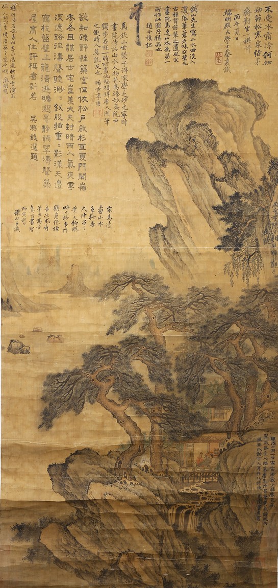 Color and ink on paper. Landscape. Inscribed and signed, hanging scroll, with fifteen seal marks.